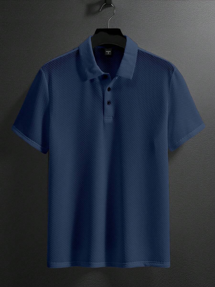 Camisa casual de hombre unicolor, con contraste de encaje y de una sola de botones