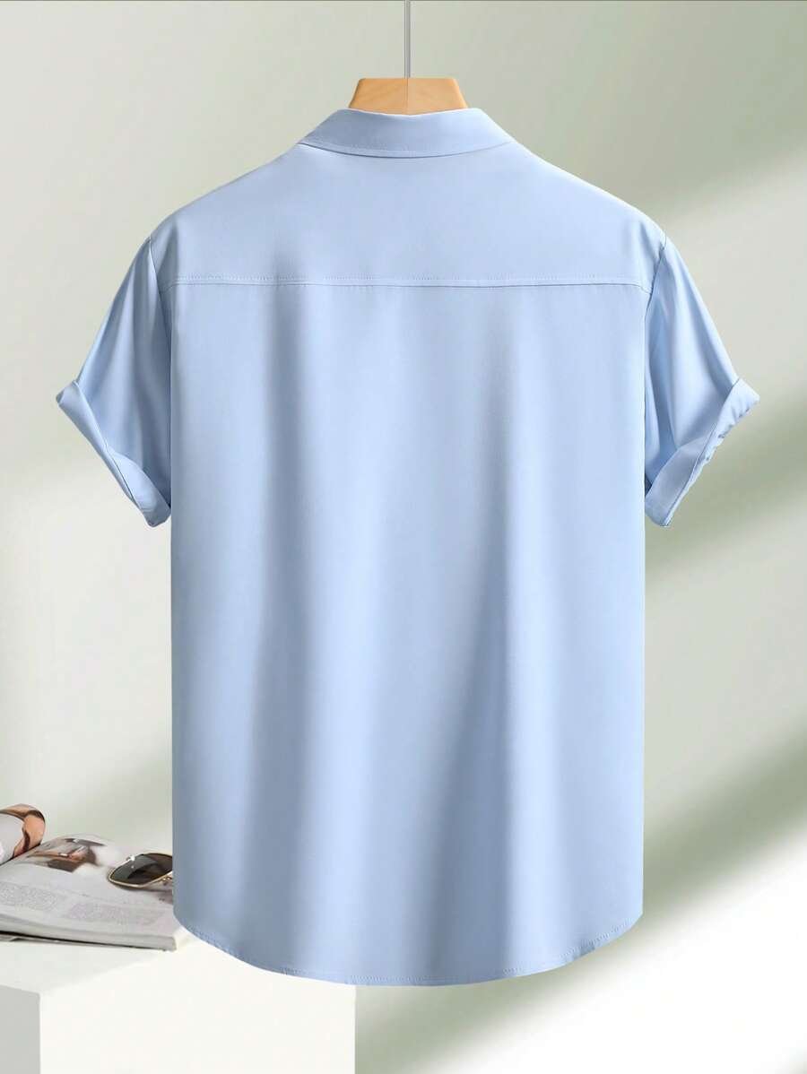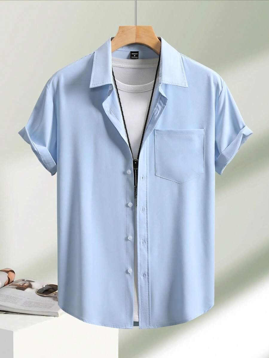 Camisa casual de manga corta de un solo pecho y bolsillo de color liso