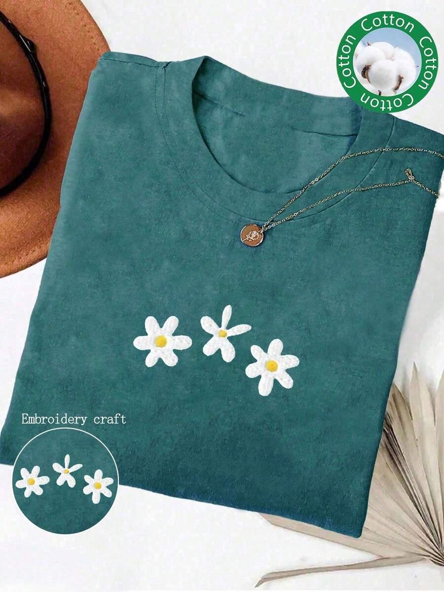 Camisa cómoda con estampado de margaritas, camisa bordada cómoda