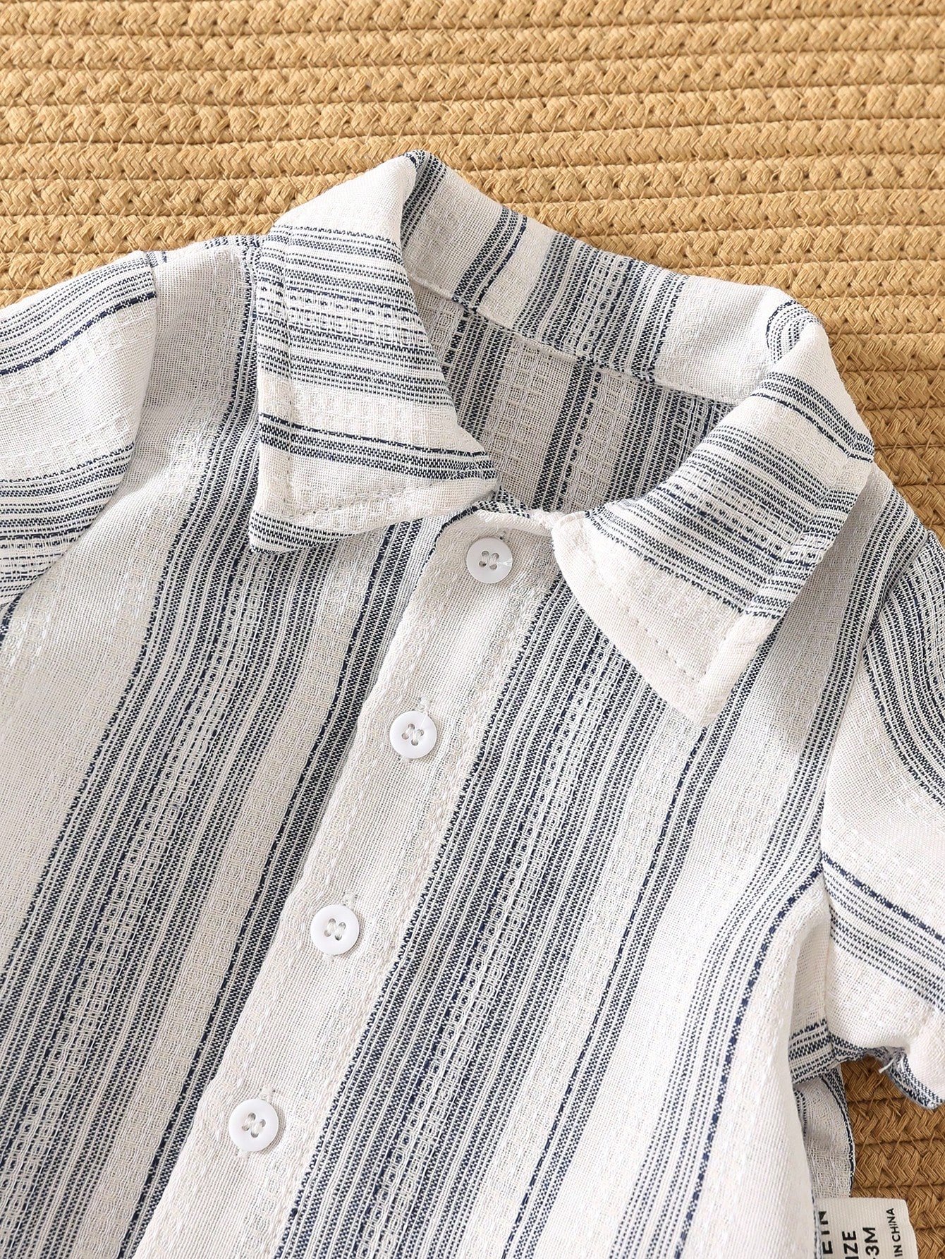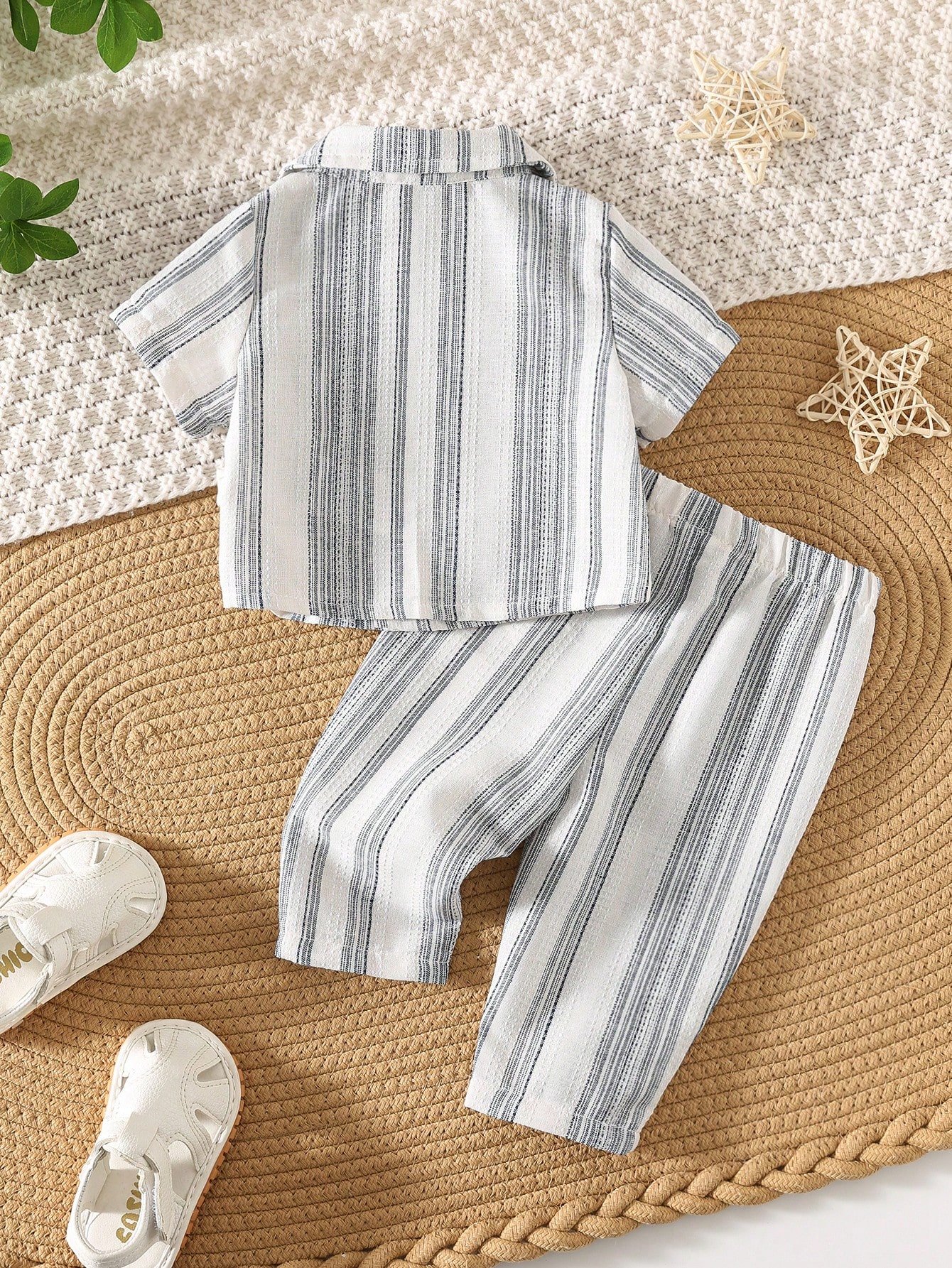 Camisa de manga corta a rayas y pantalones largos de cintura elástica