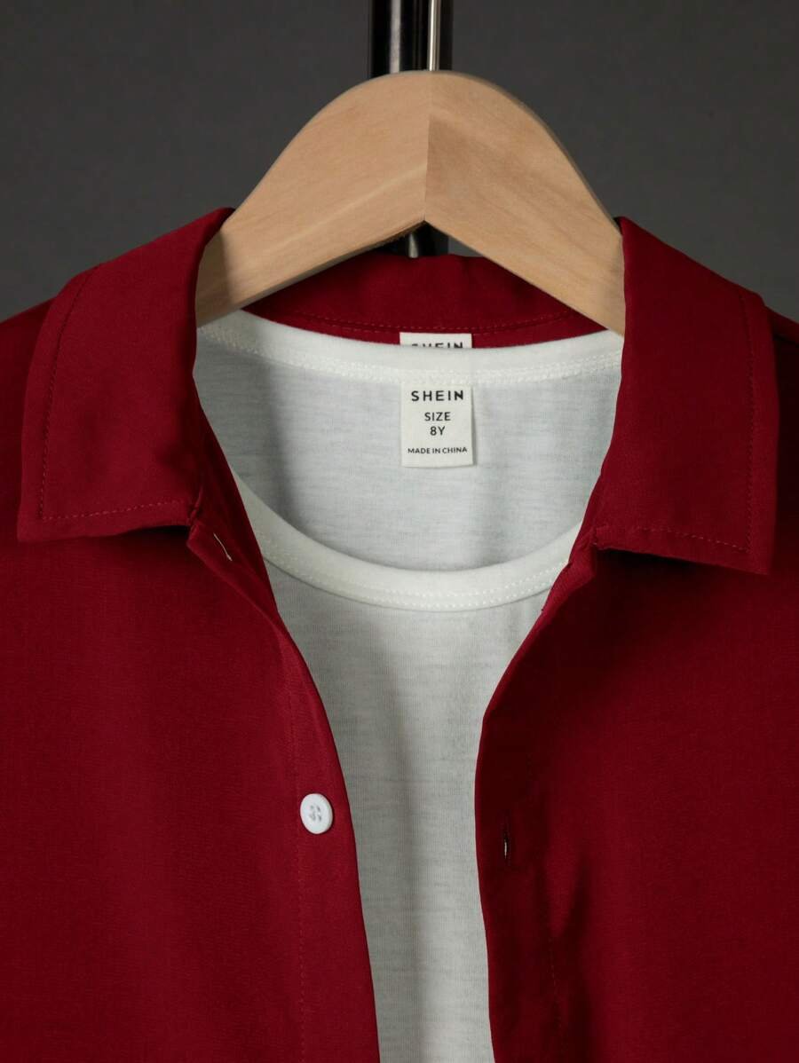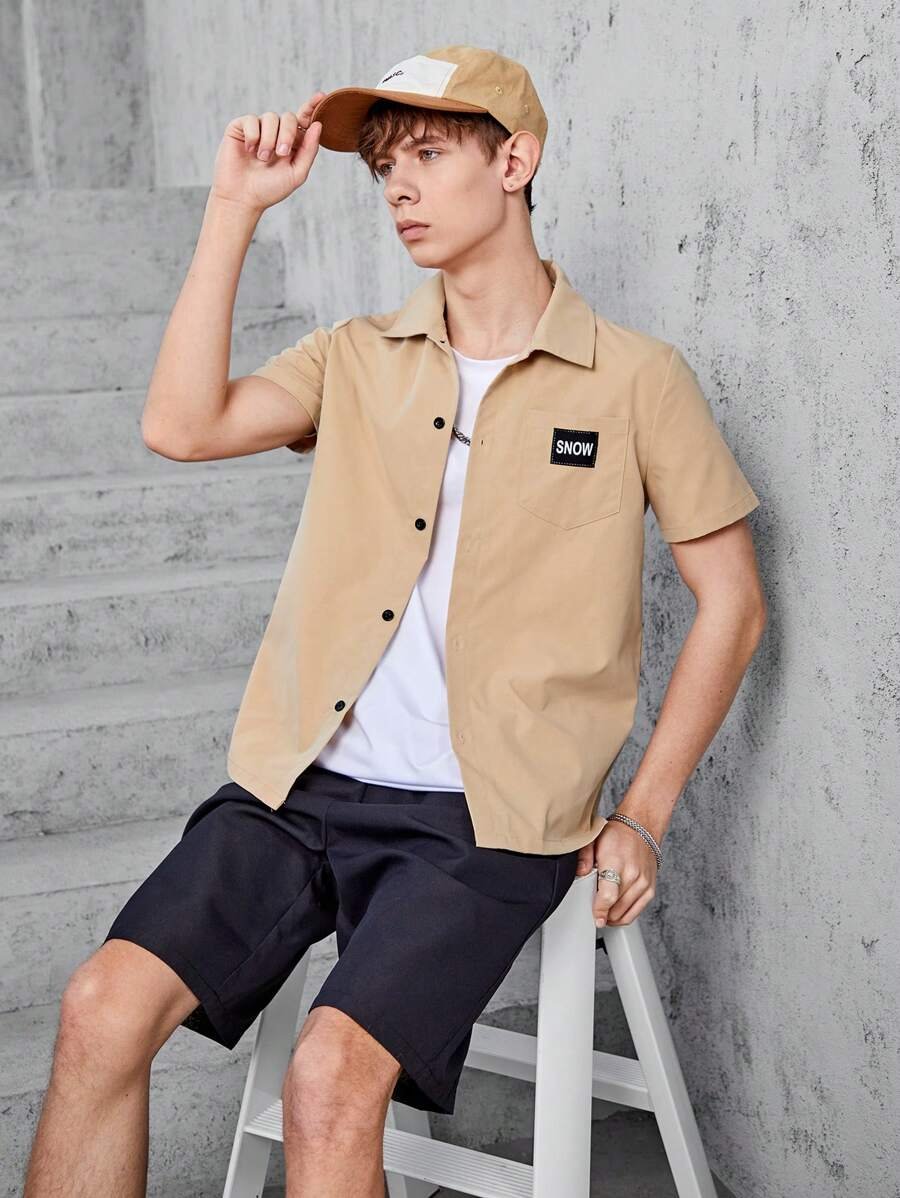Camisa De Manga Corta De Color S?lido C?moda E Informal