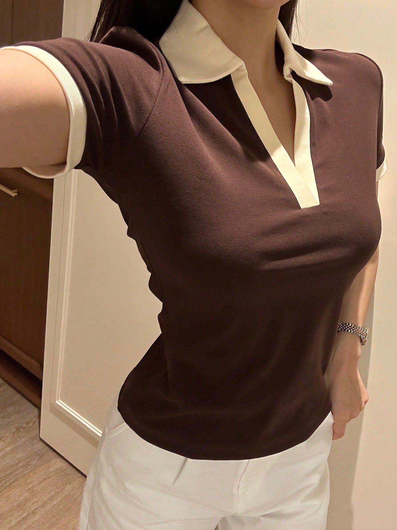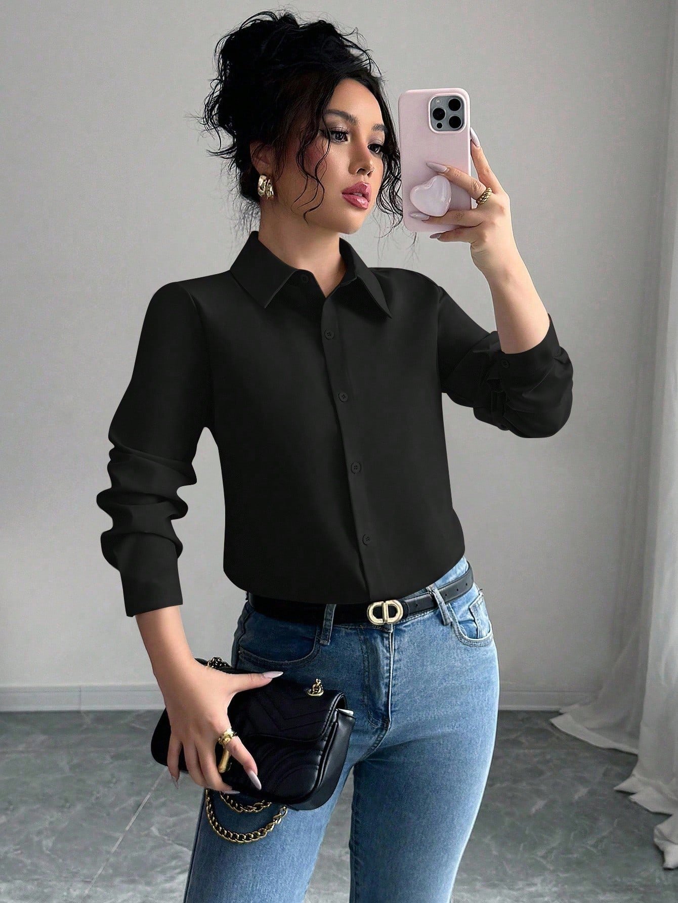 Camisa de manga larga con cuello vuelto de moda casual