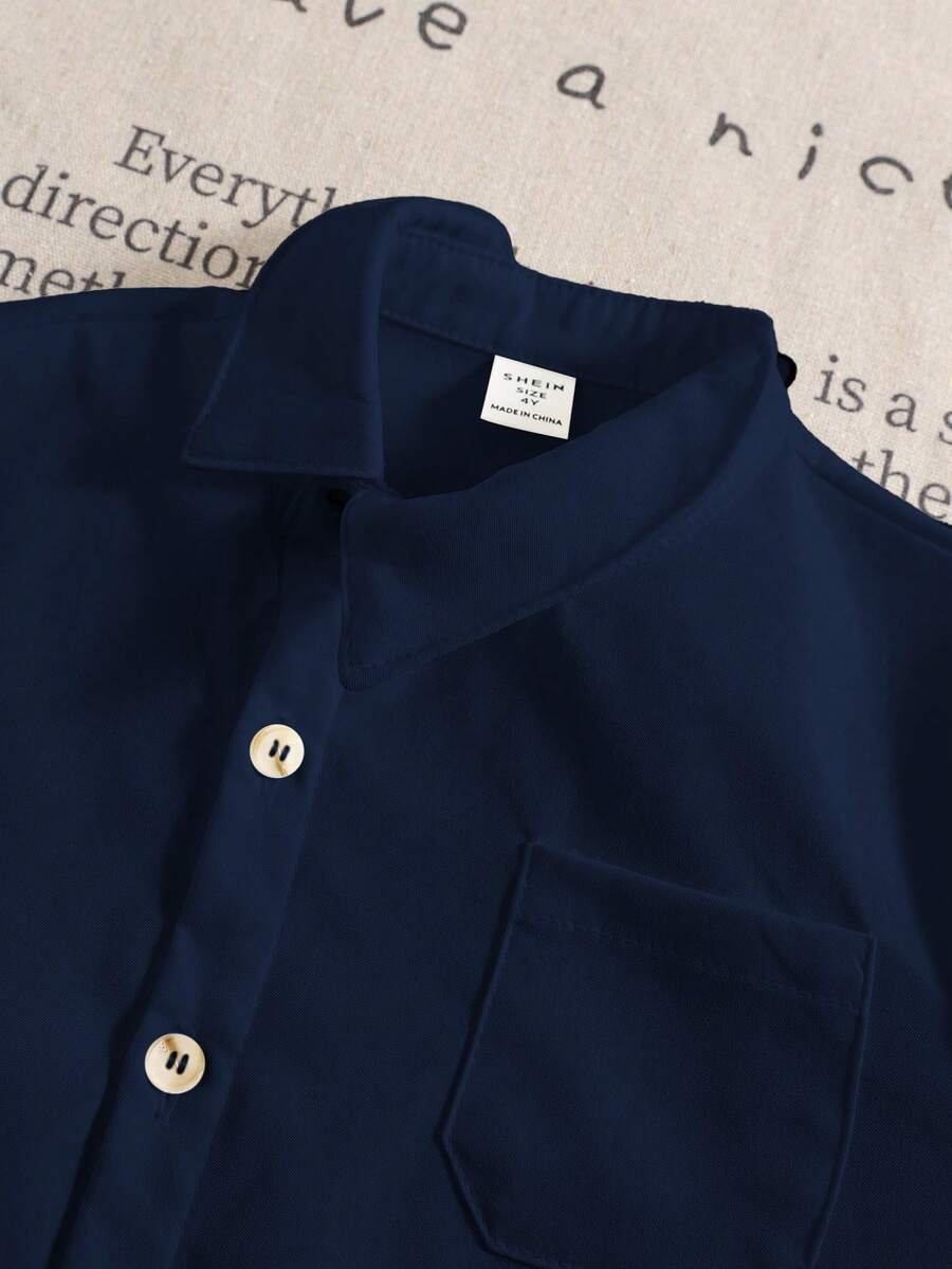 Camisa de manga larga con cuello vuelto y botones en diagonal, de unicolor