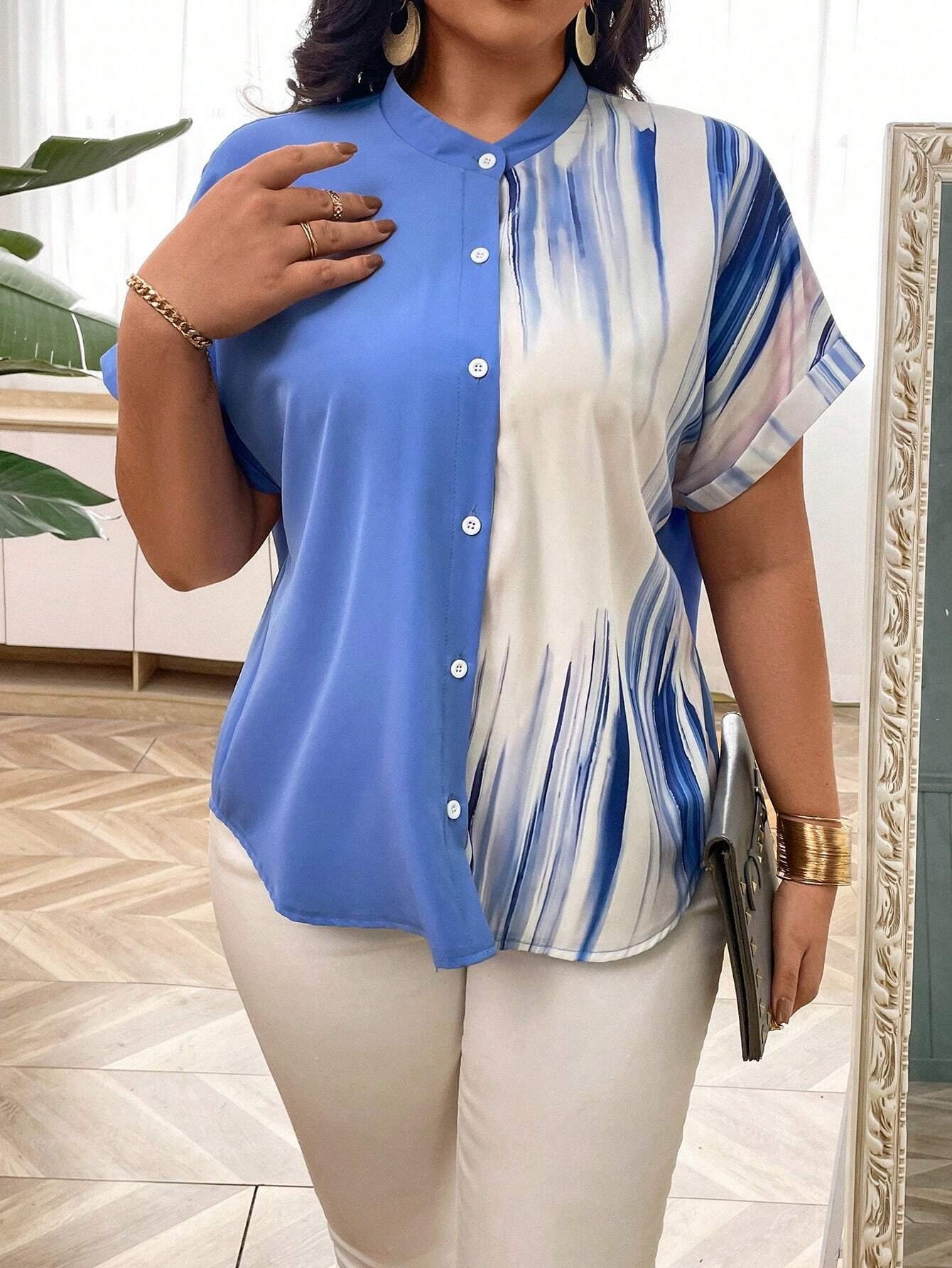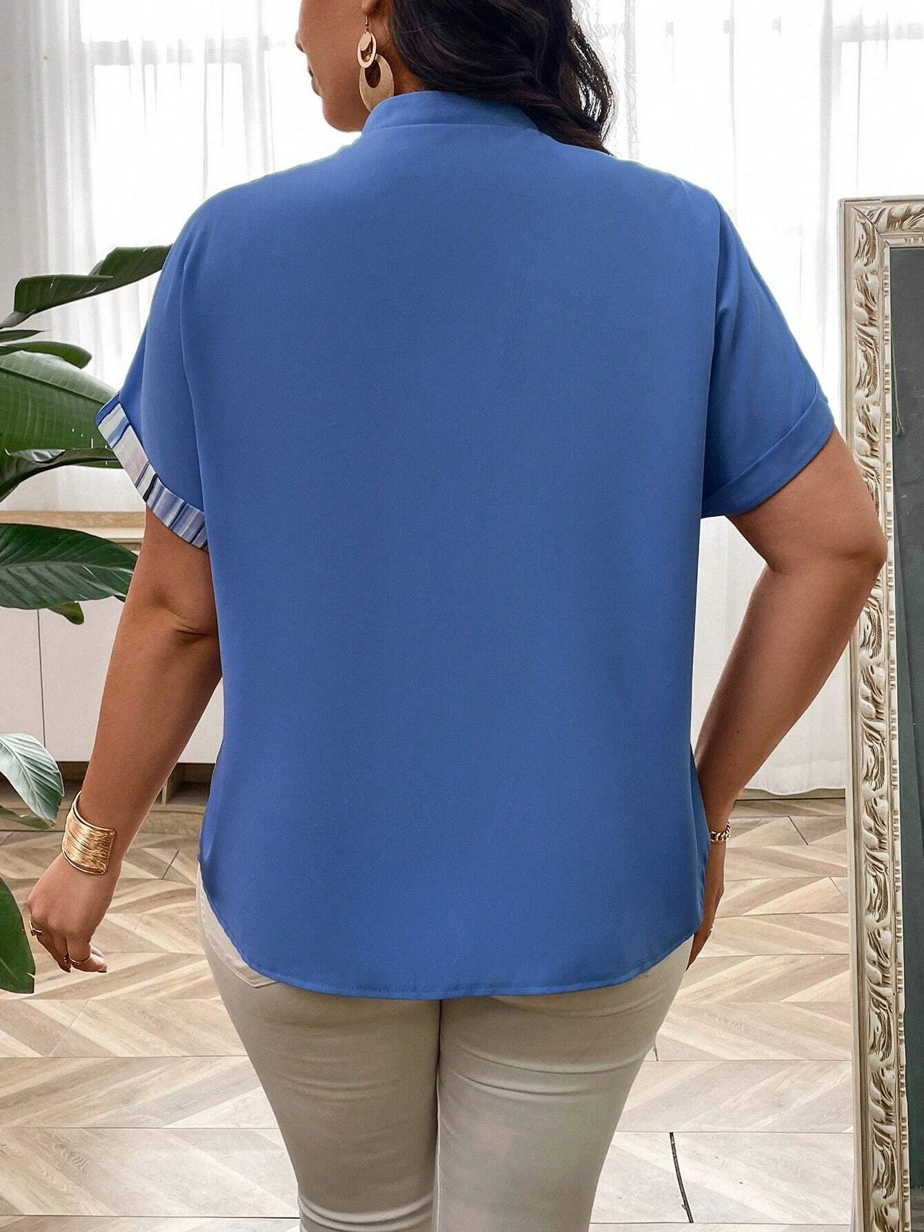 Camisa De Mujer De Talla Grande Con Cuello Alto Y Mangas Murci?lago