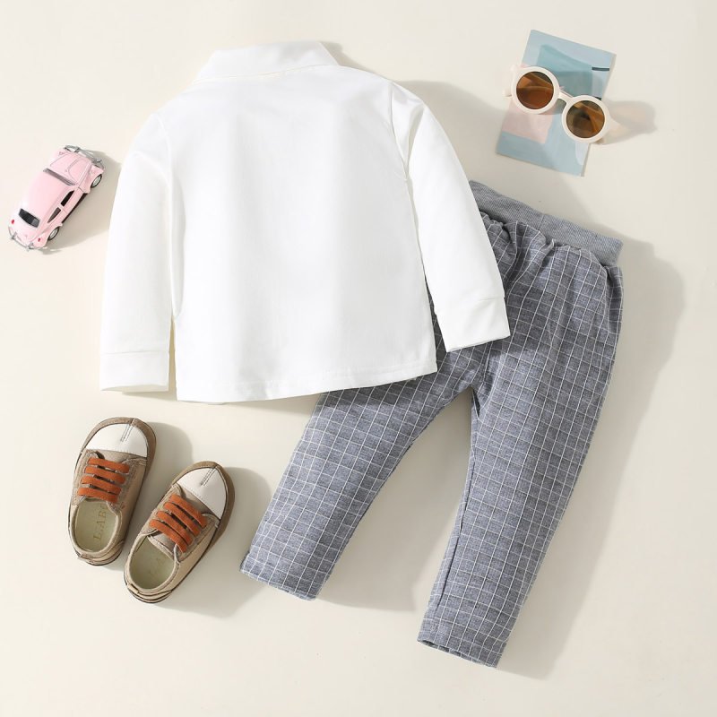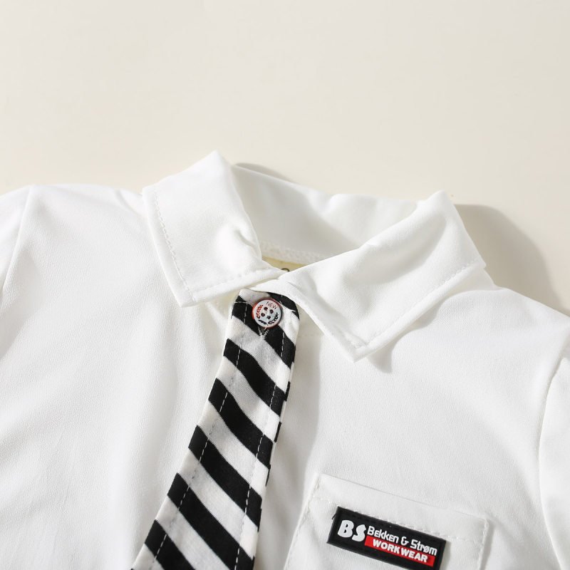 Camisa de solapa con estampado de letras de color s?lido para ni?os