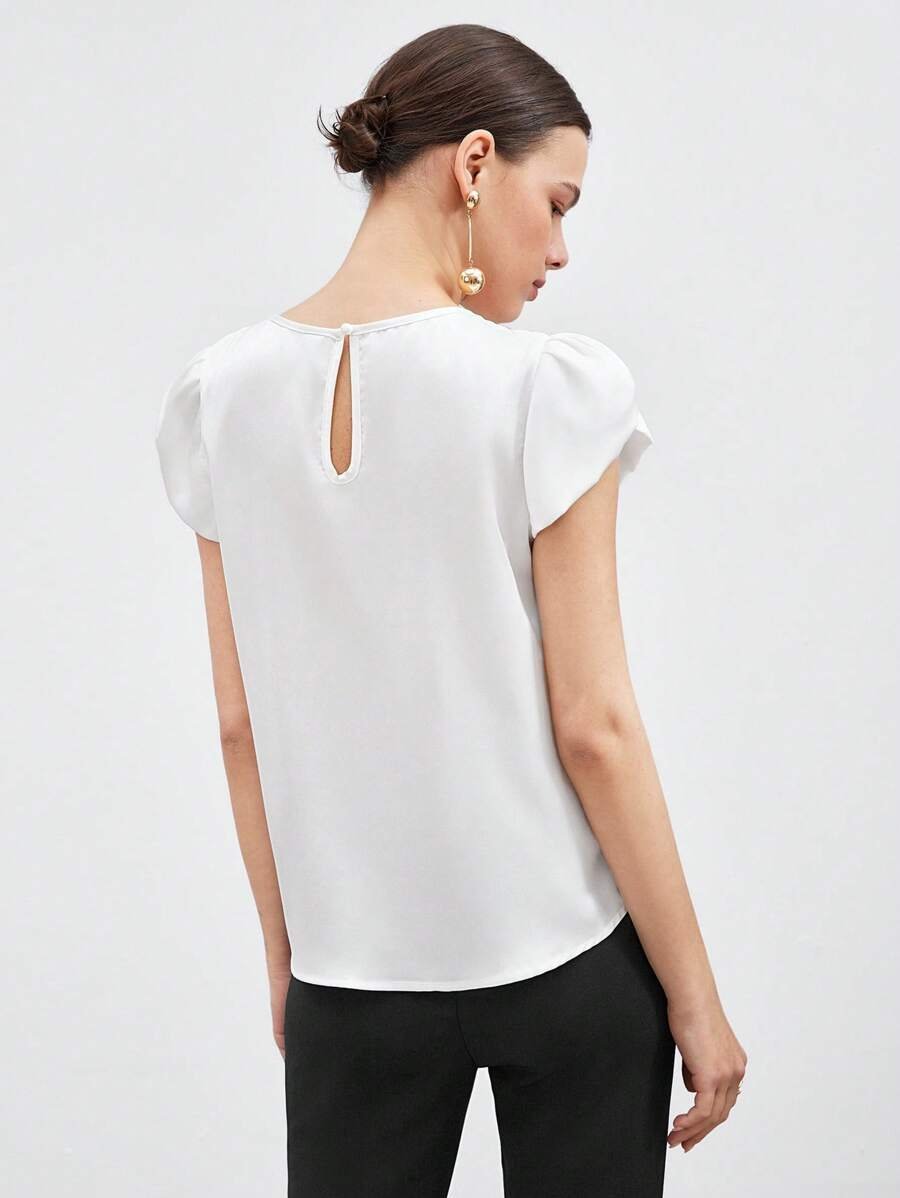 Camisa De Trabajo De Mujer De Cuello Redondo De Sat?n