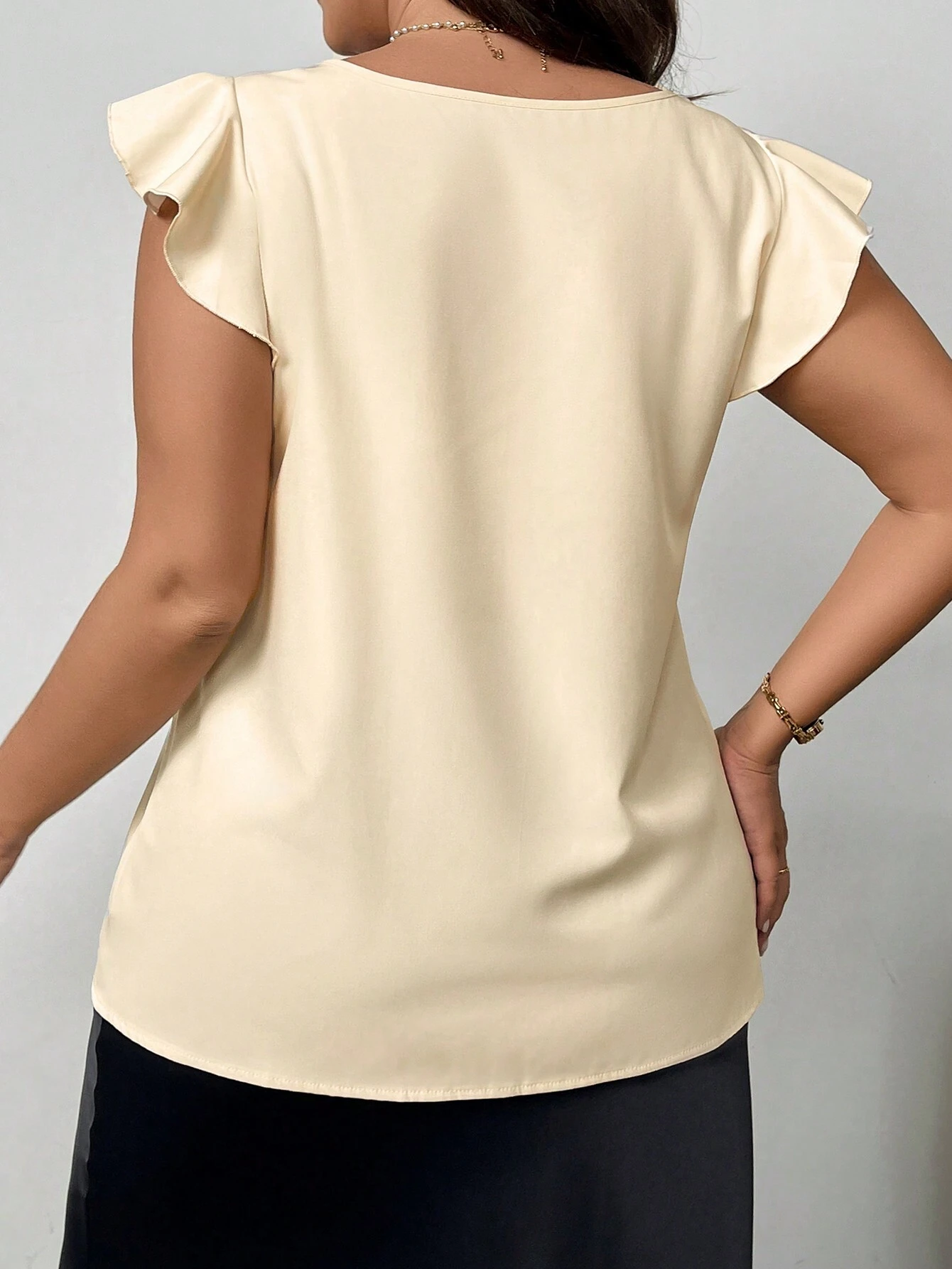 Blusa de verano elegante, simple y festiva de manga con volantes