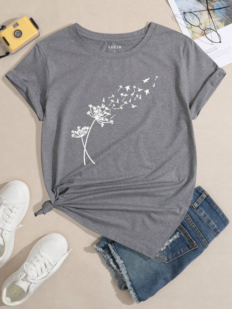 Camisa informal de mujer con cuello redondo y estampado de flores