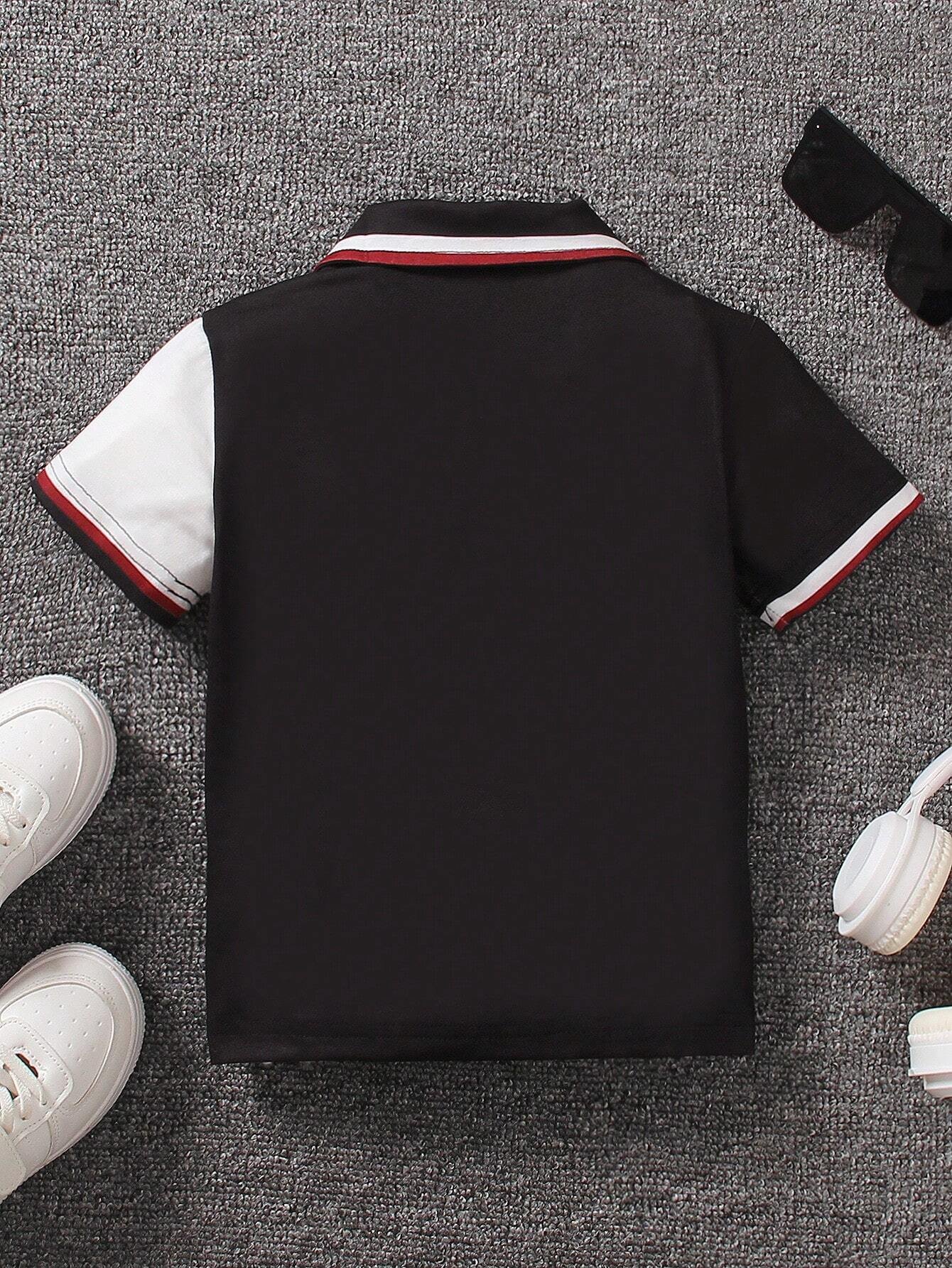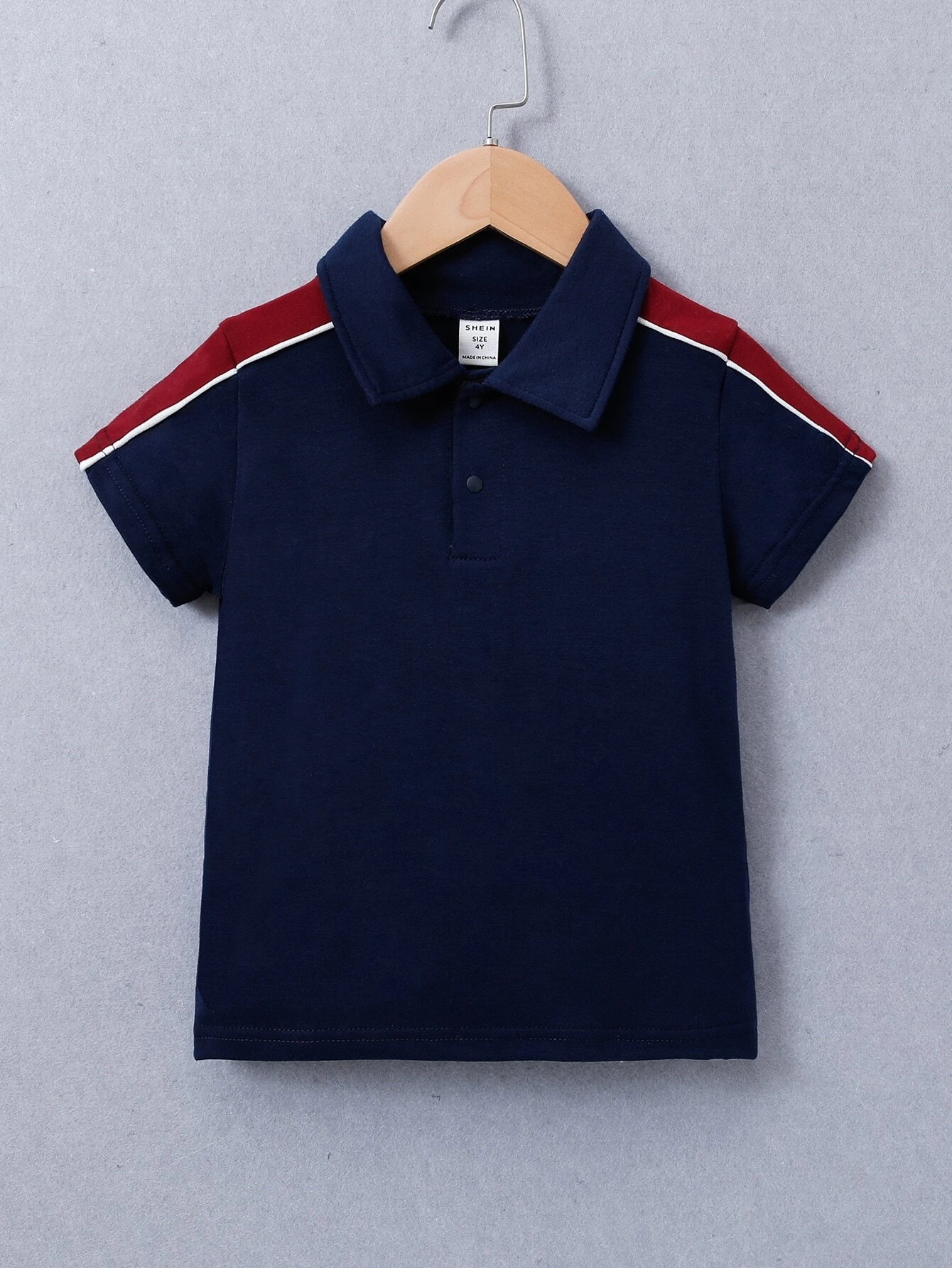 Camisa Informal Polo De Manga Corta Para Ni?os Peque?os Con Bloques De Color Y Solapa
