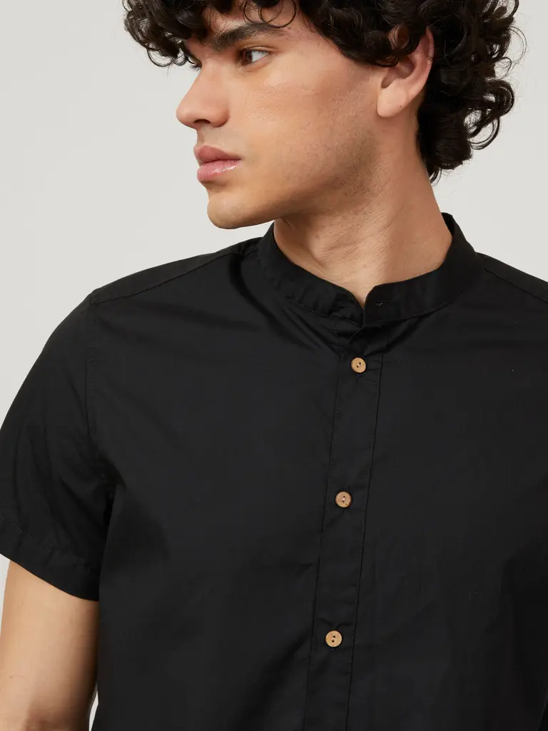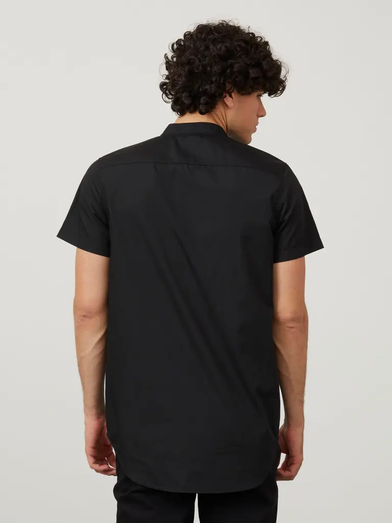Camisa Long Fit Manga Corta Cuello Mao negro