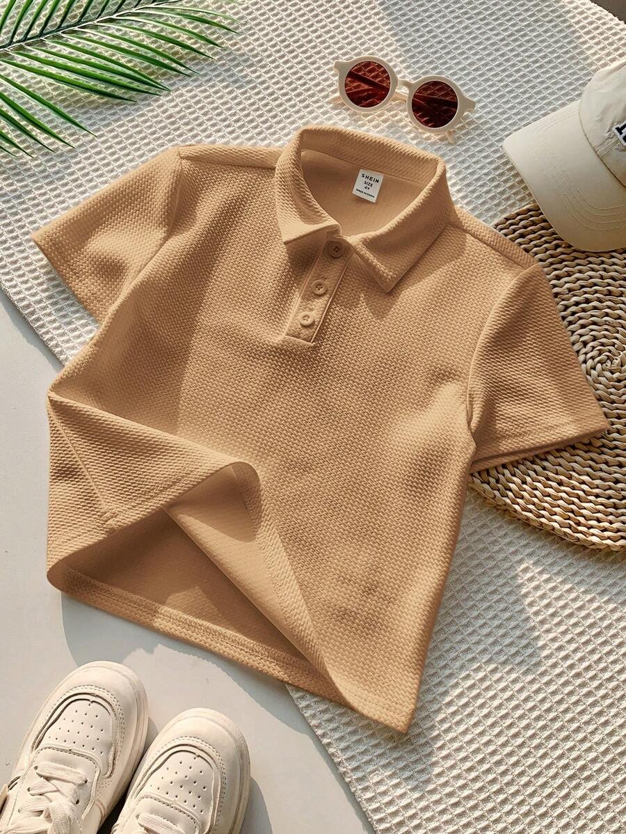 Camisa polo de manga corta con textura de tela retro