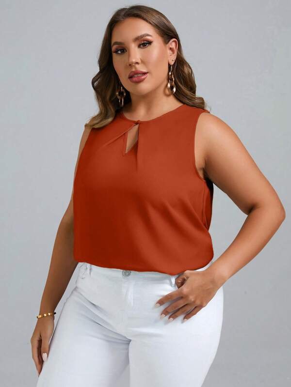 Camisa sin manga de cuello con abertura de ojo unicolor