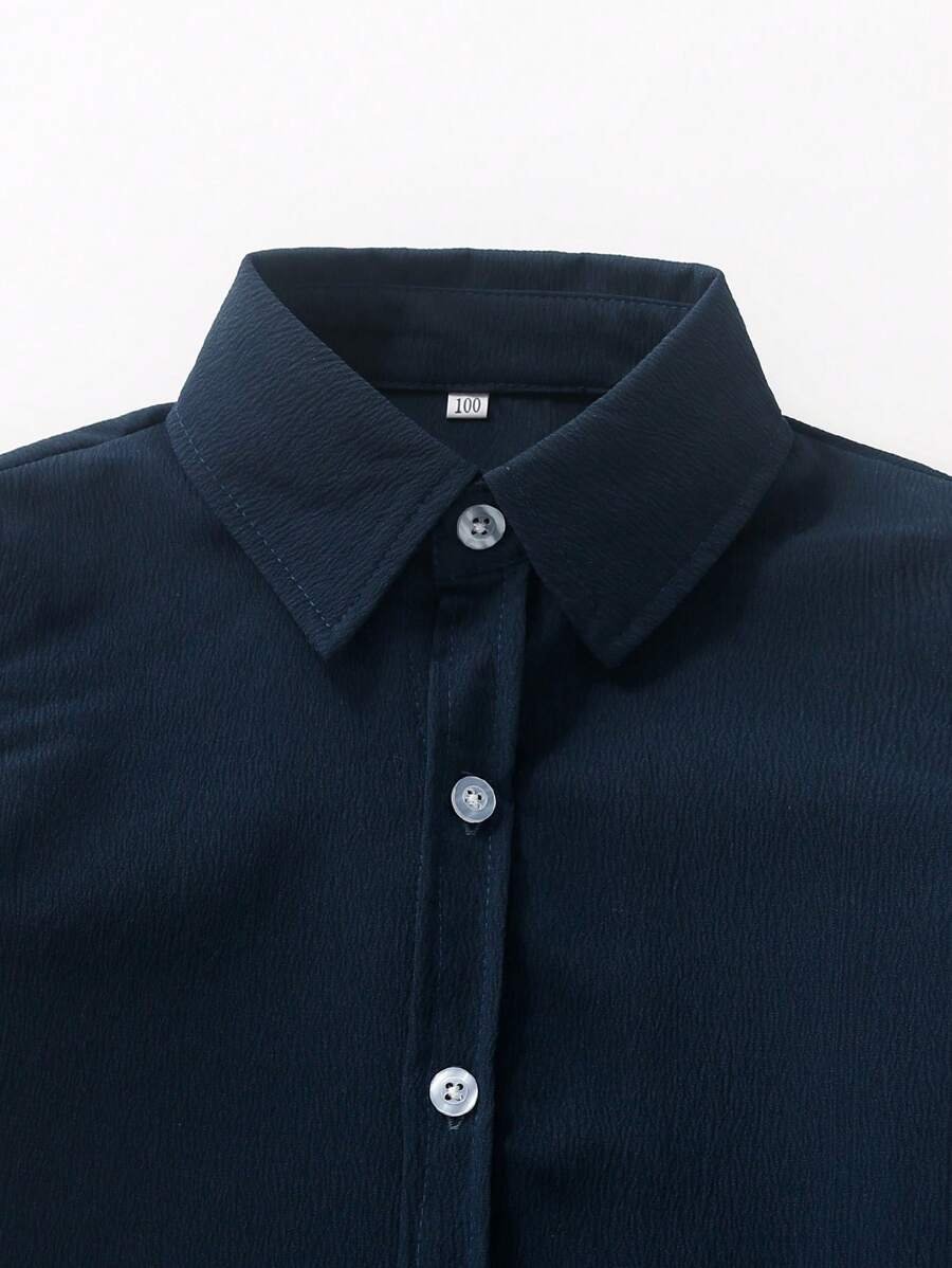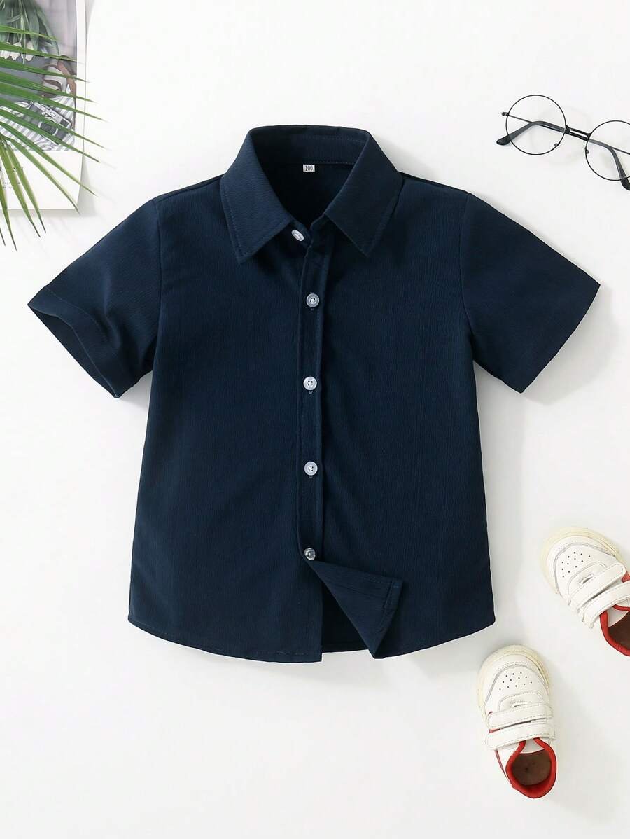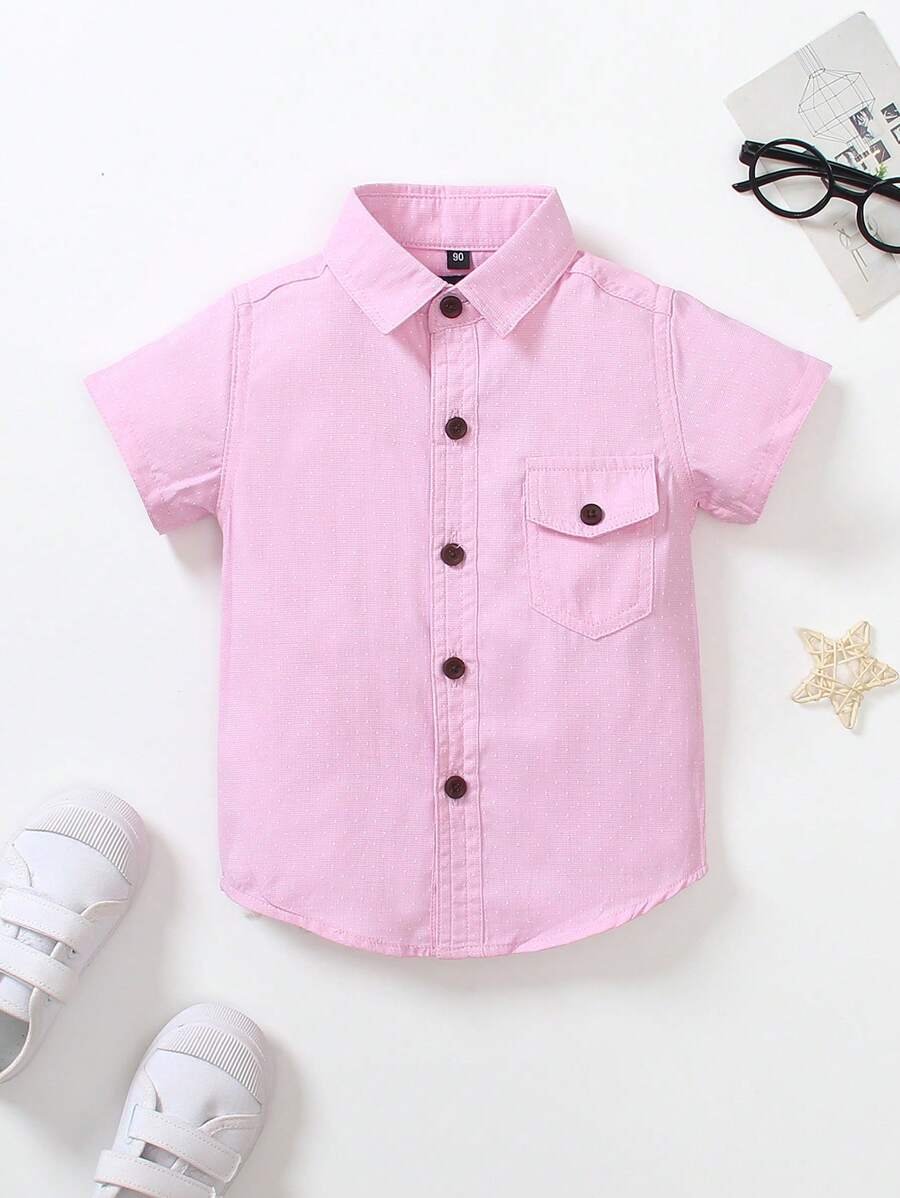 Camisa Sólida De Manga Corta Unicolor Para Niño