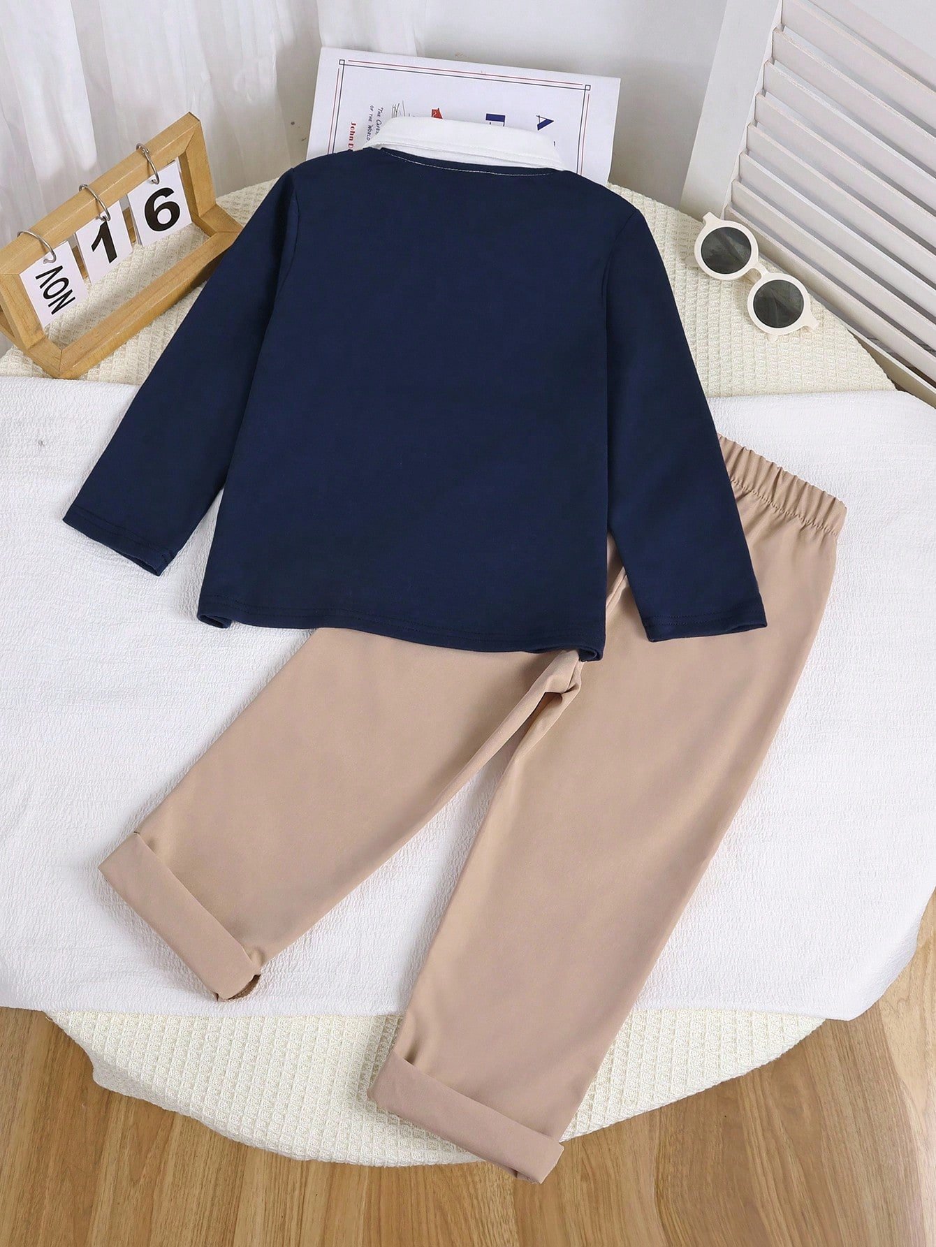 Camisa tipo polo de manga larga con estampado y pantalón casual