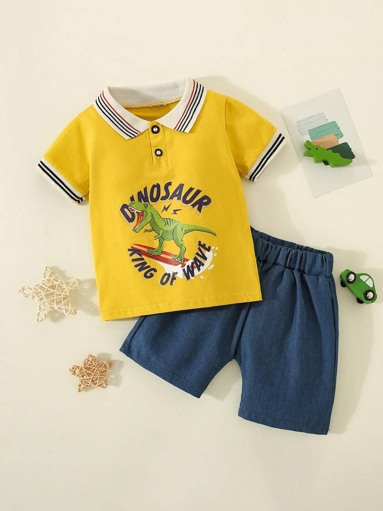 Camisa y pantalones de manga corta con estampado de pir?mide para ni?os peque?os