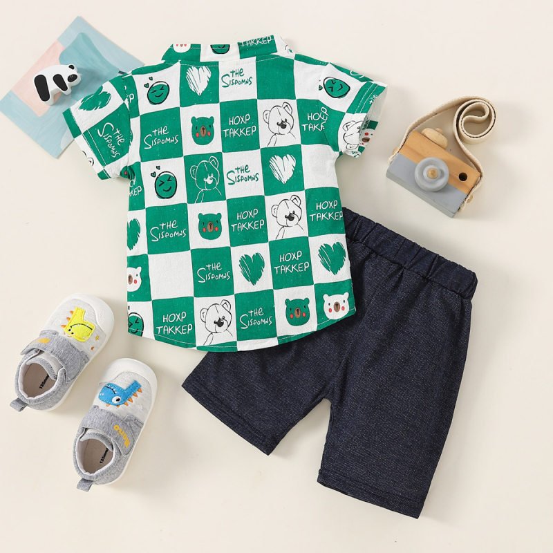 Camisa y pantalones de manga corta con estampado de pir?mide para ni?os peque?os