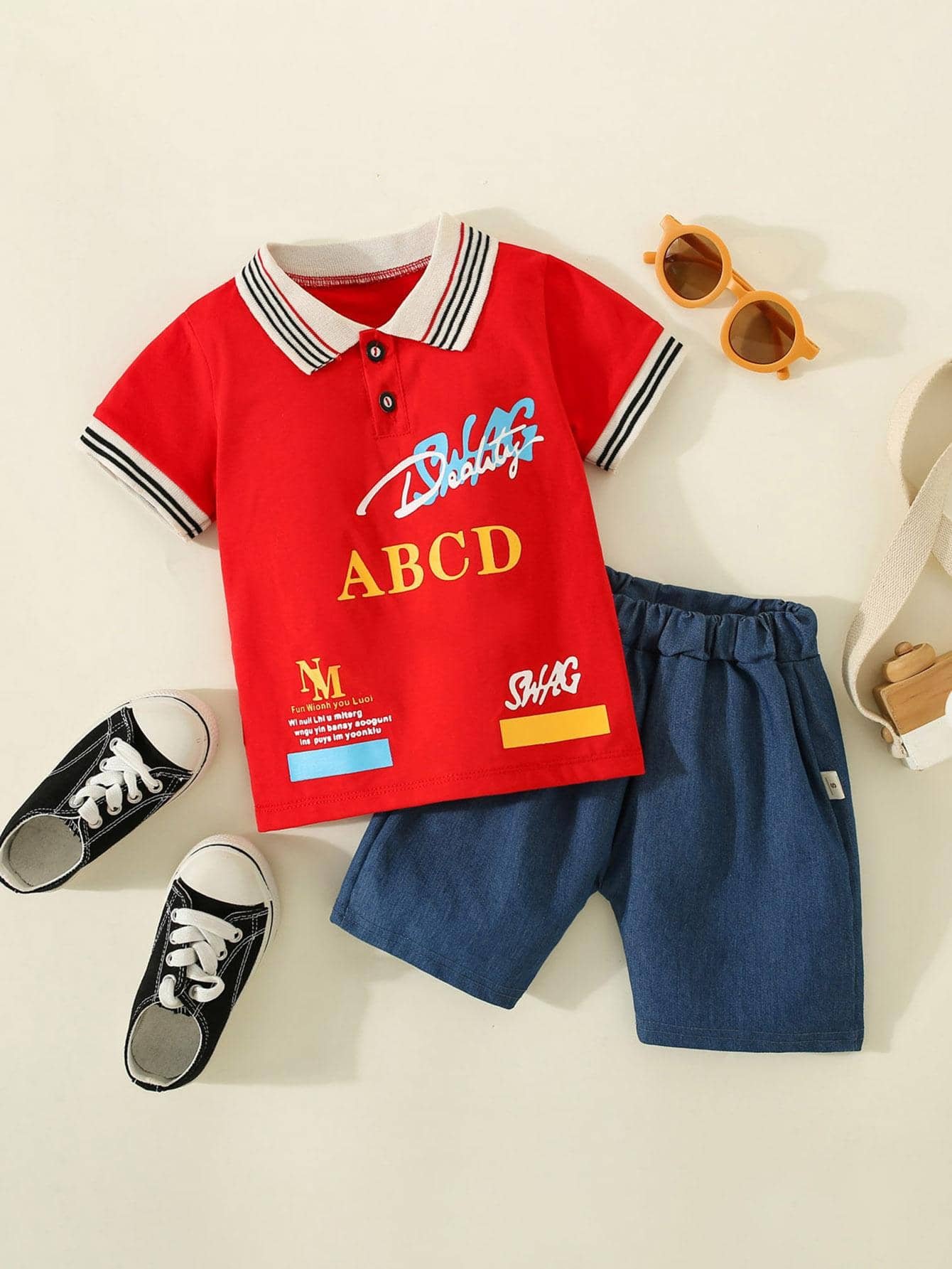 Camisa y pantalones de manga corta con estampado de pir?mide para ni?os peque?os
