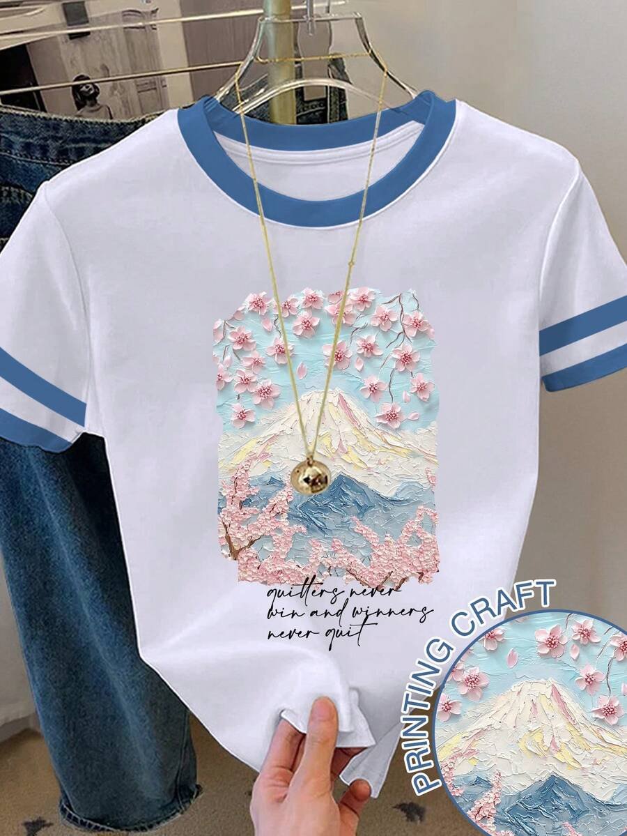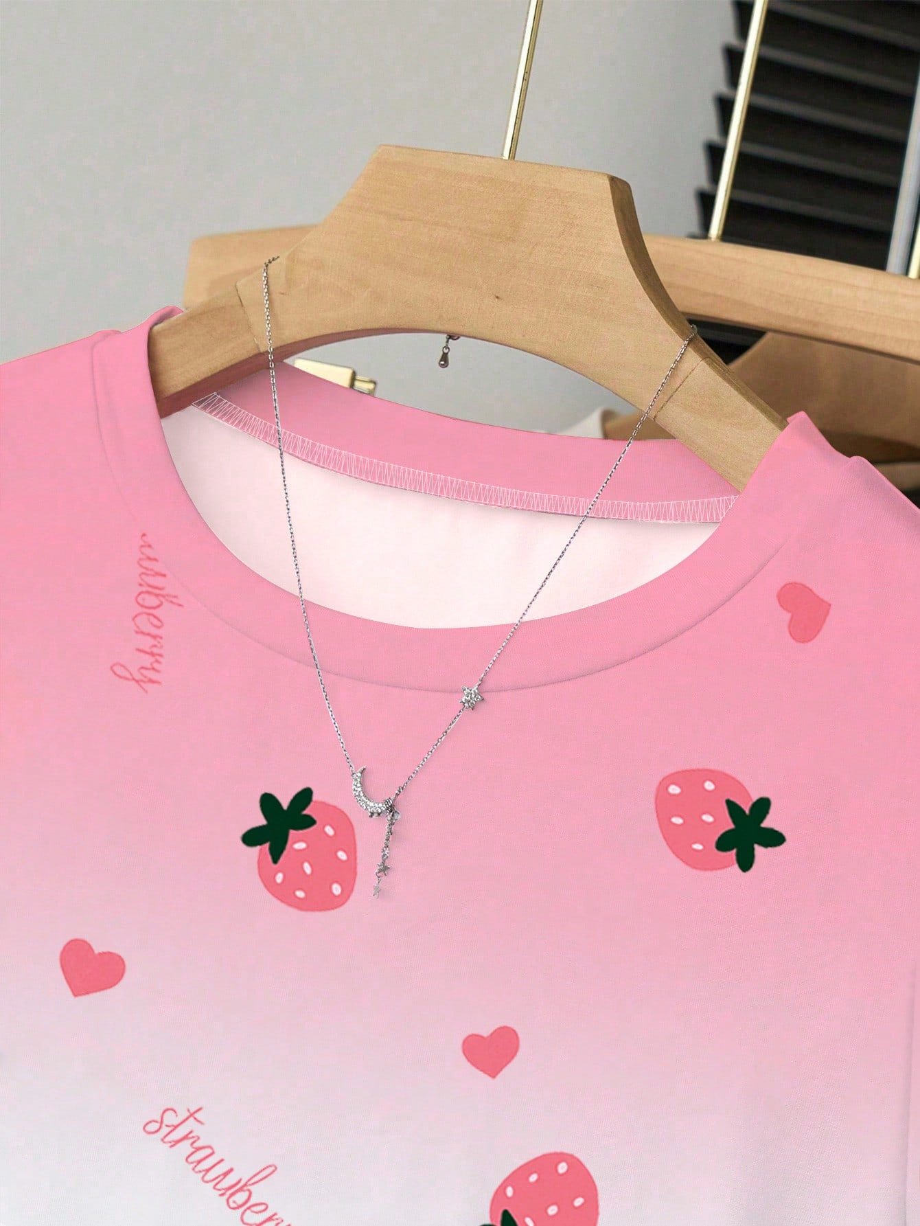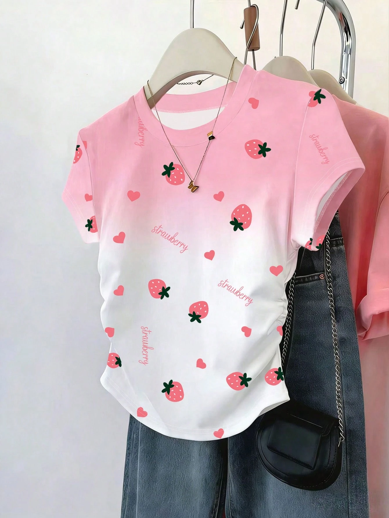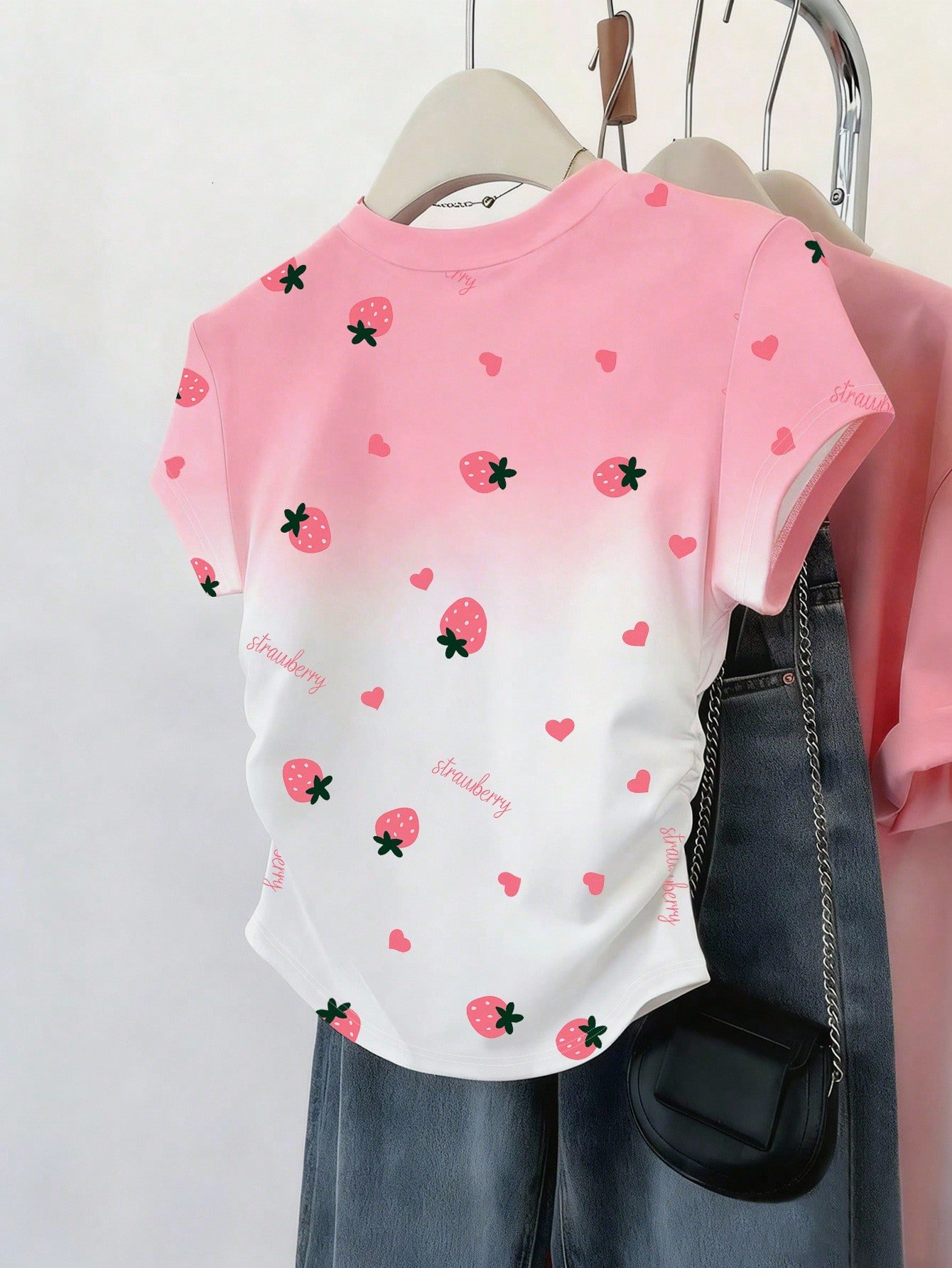 Camiseta ajustada de manga con volantes en degradado con estampado de corazón