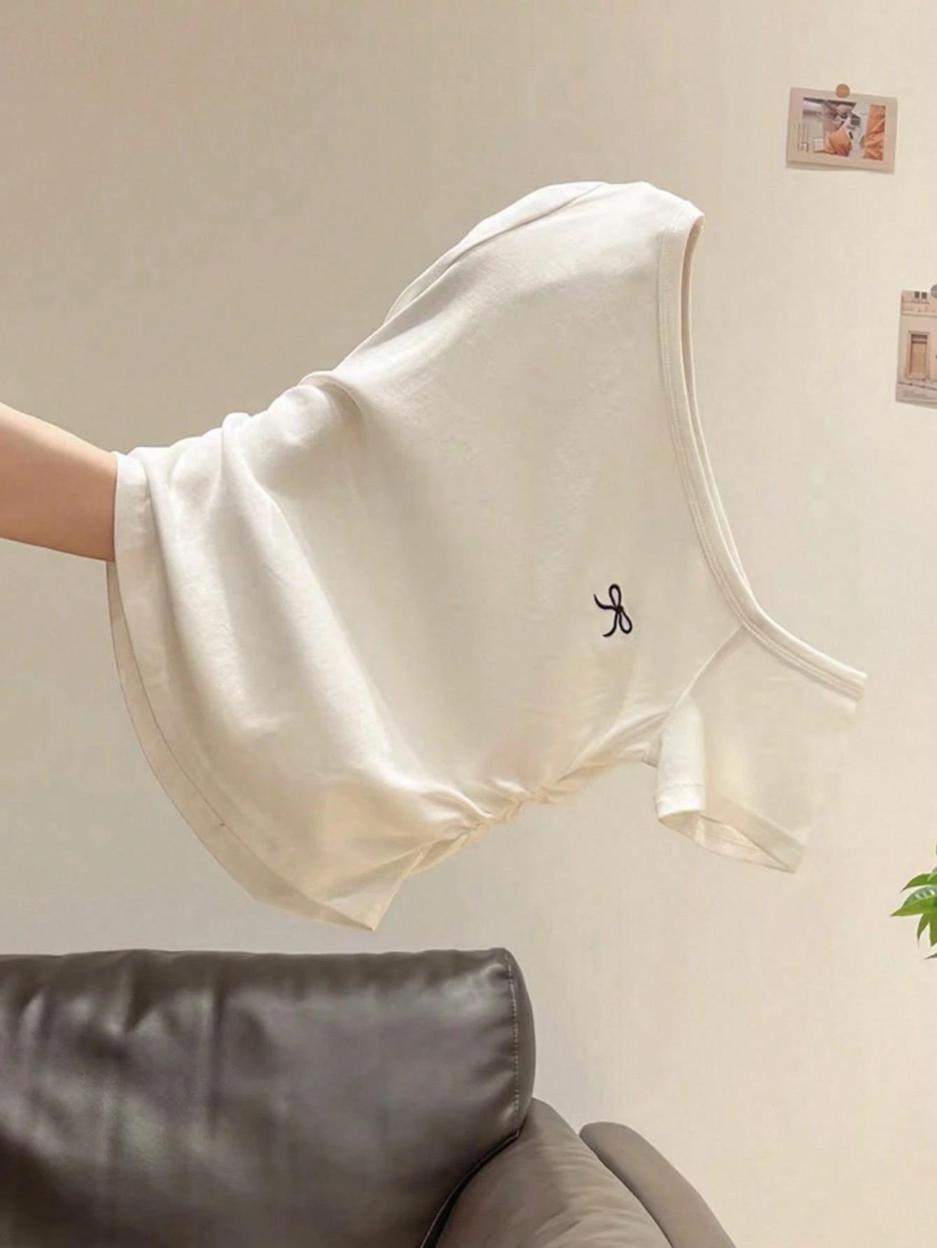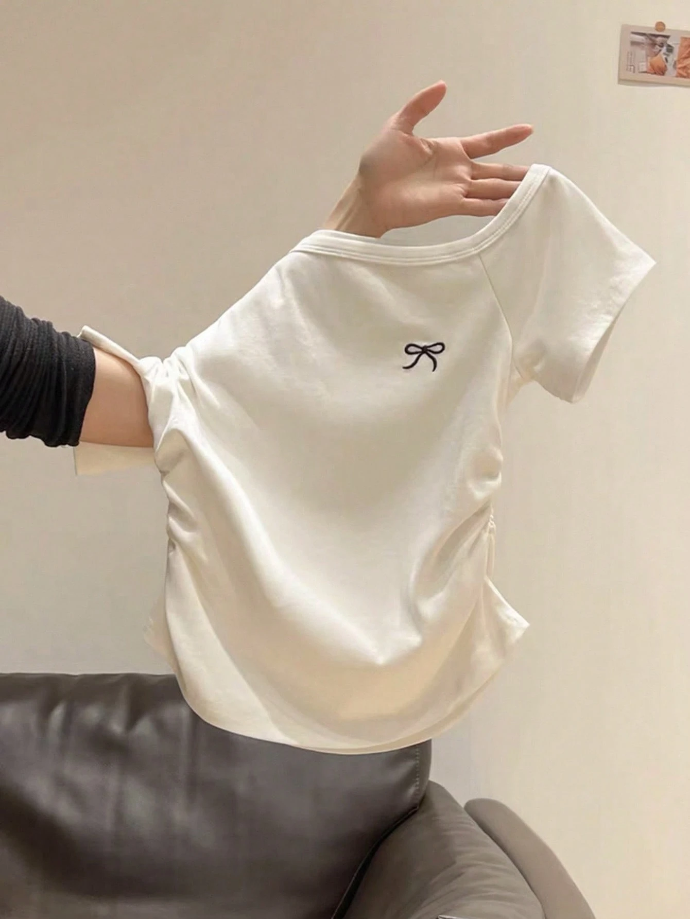 Camiseta ajustada de manga corta asimétrica con hombros deslizantes