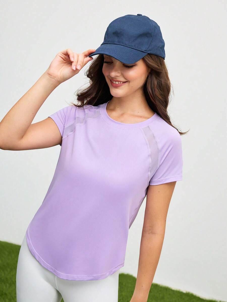 Camiseta ajustada de manga corta y cuello redondo azul claro con corte cropped