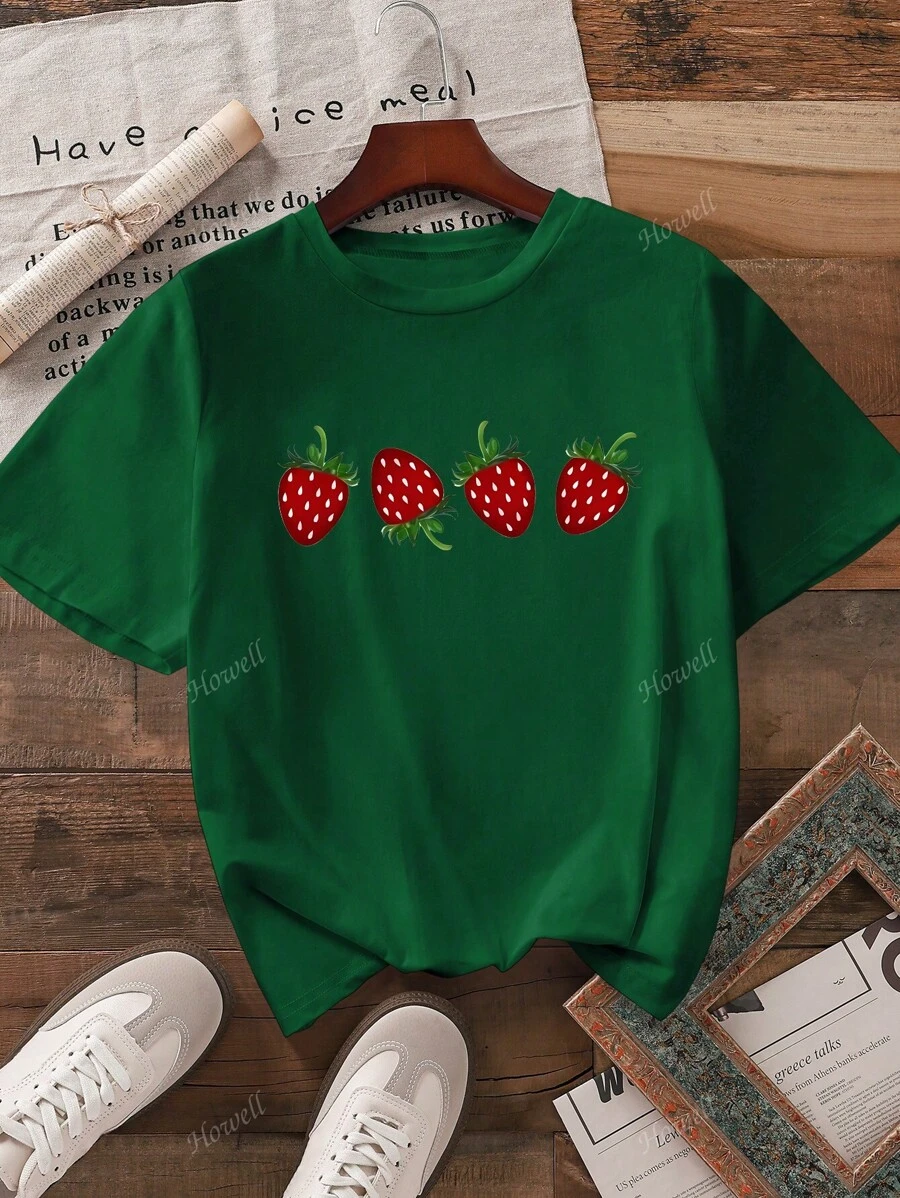 Camiseta ajustada de mujer de manga corta con cuello redondo