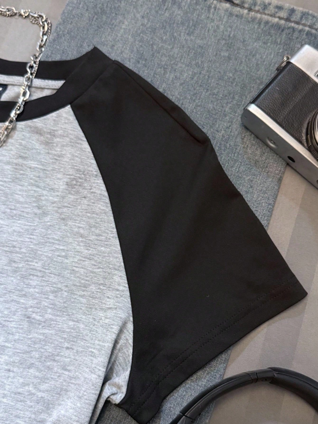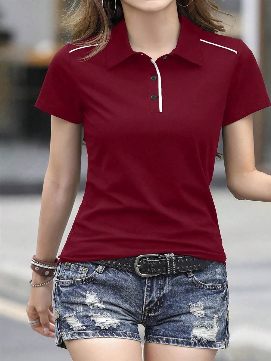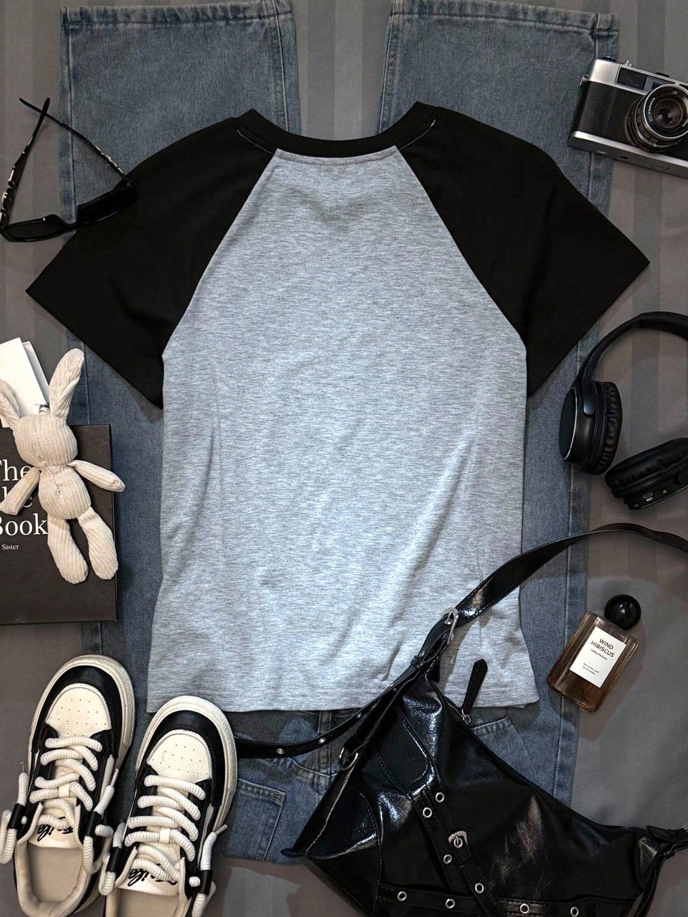 Camiseta ajustada para mujer de manga corta con cuello redondo y gráfico
