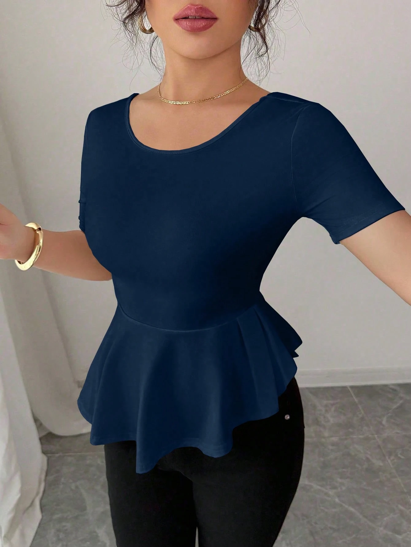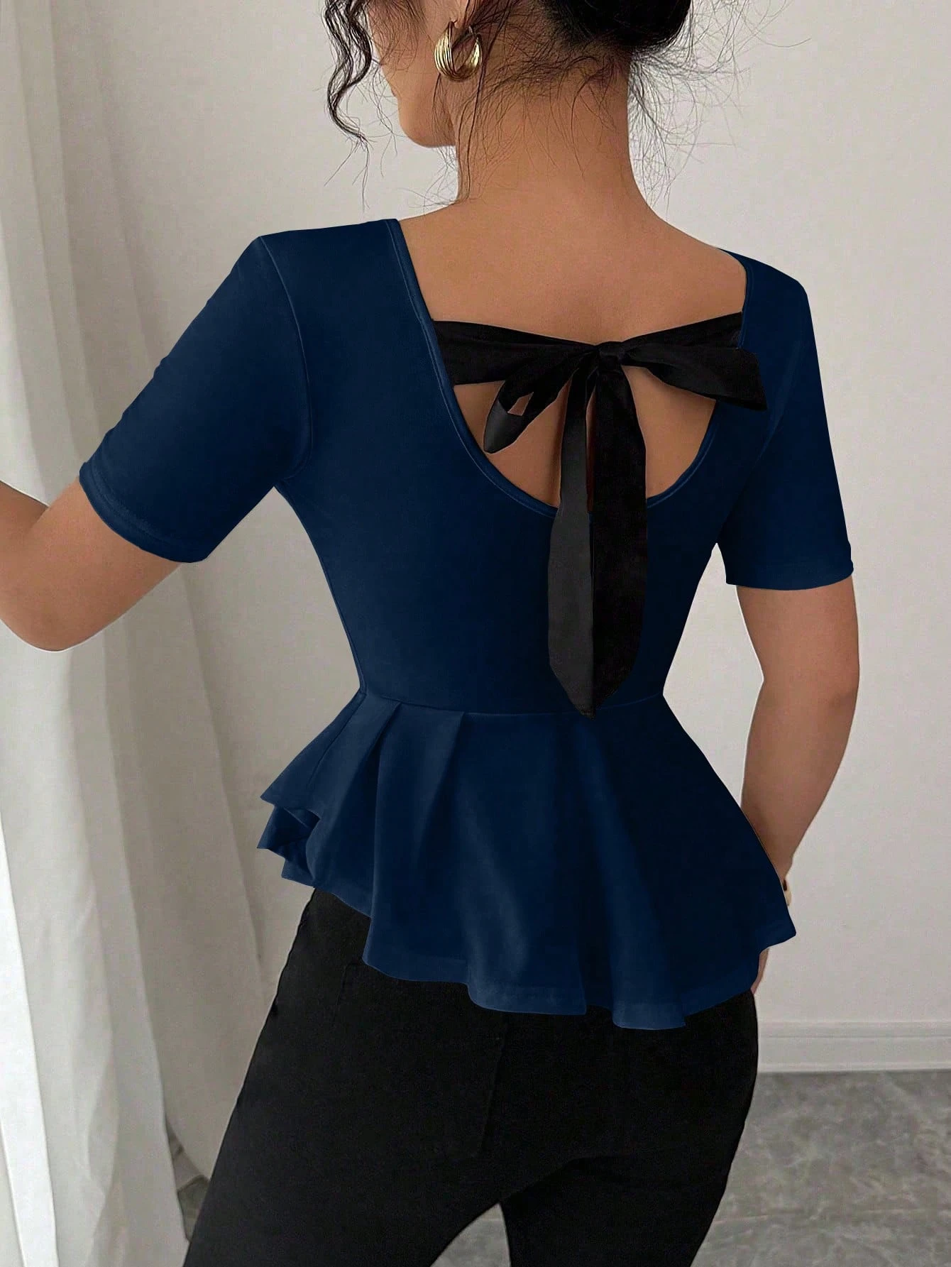 Blusa casual con lazo en la espalda y dobladillo fruncido en la cintura