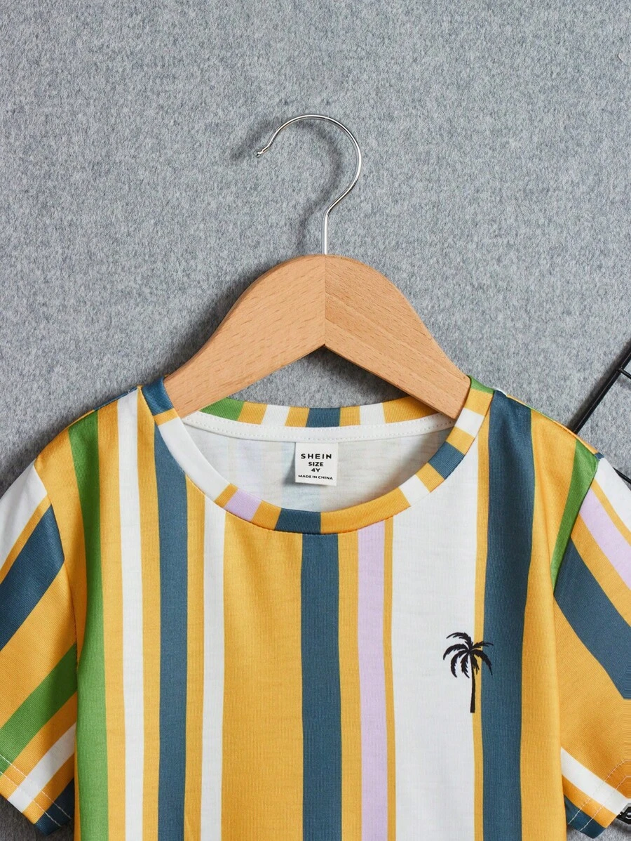 Camiseta Casual De Color Bloque De ?rbol De Coco Impresa