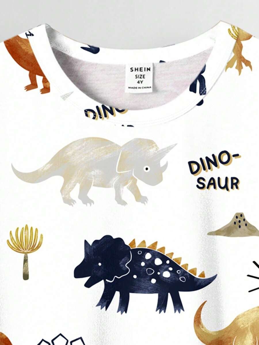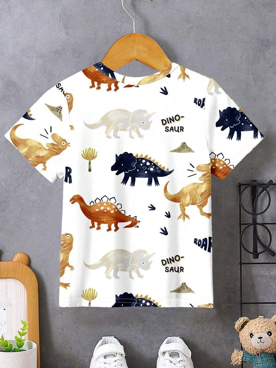 Camiseta casual de cuello redondo y manga corta con patrón de dinosaurio
