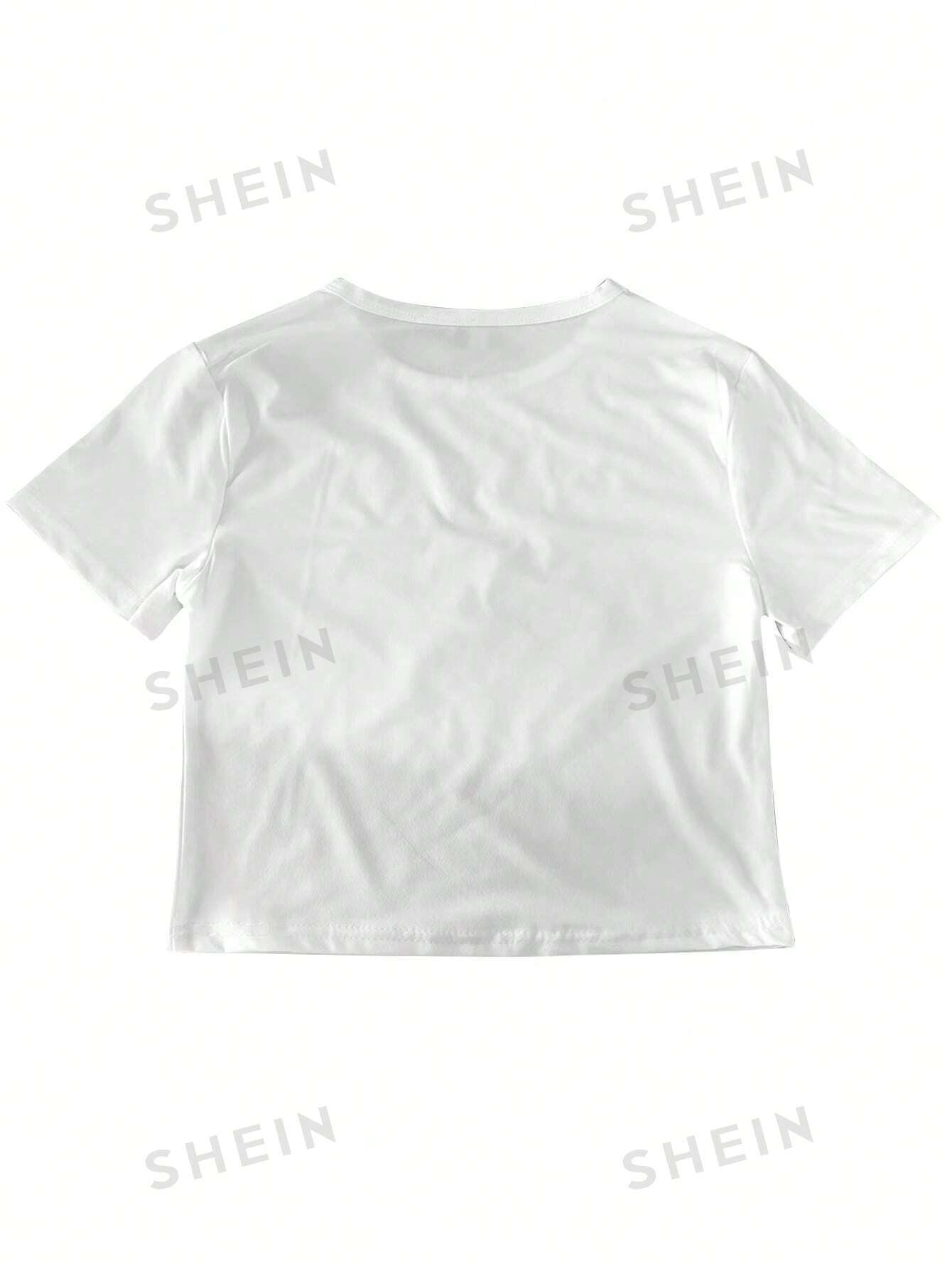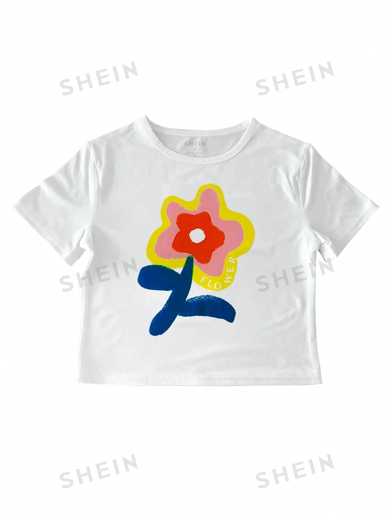 Camiseta casual de manga corta con cuello redondo con estampado floral