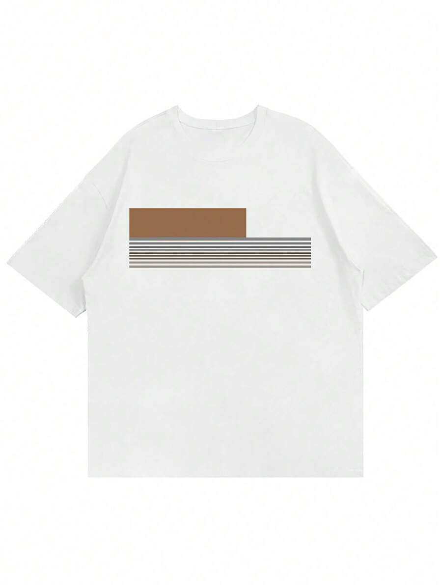 Camiseta casual de manga corta con cuello redondo y estampado de rayas