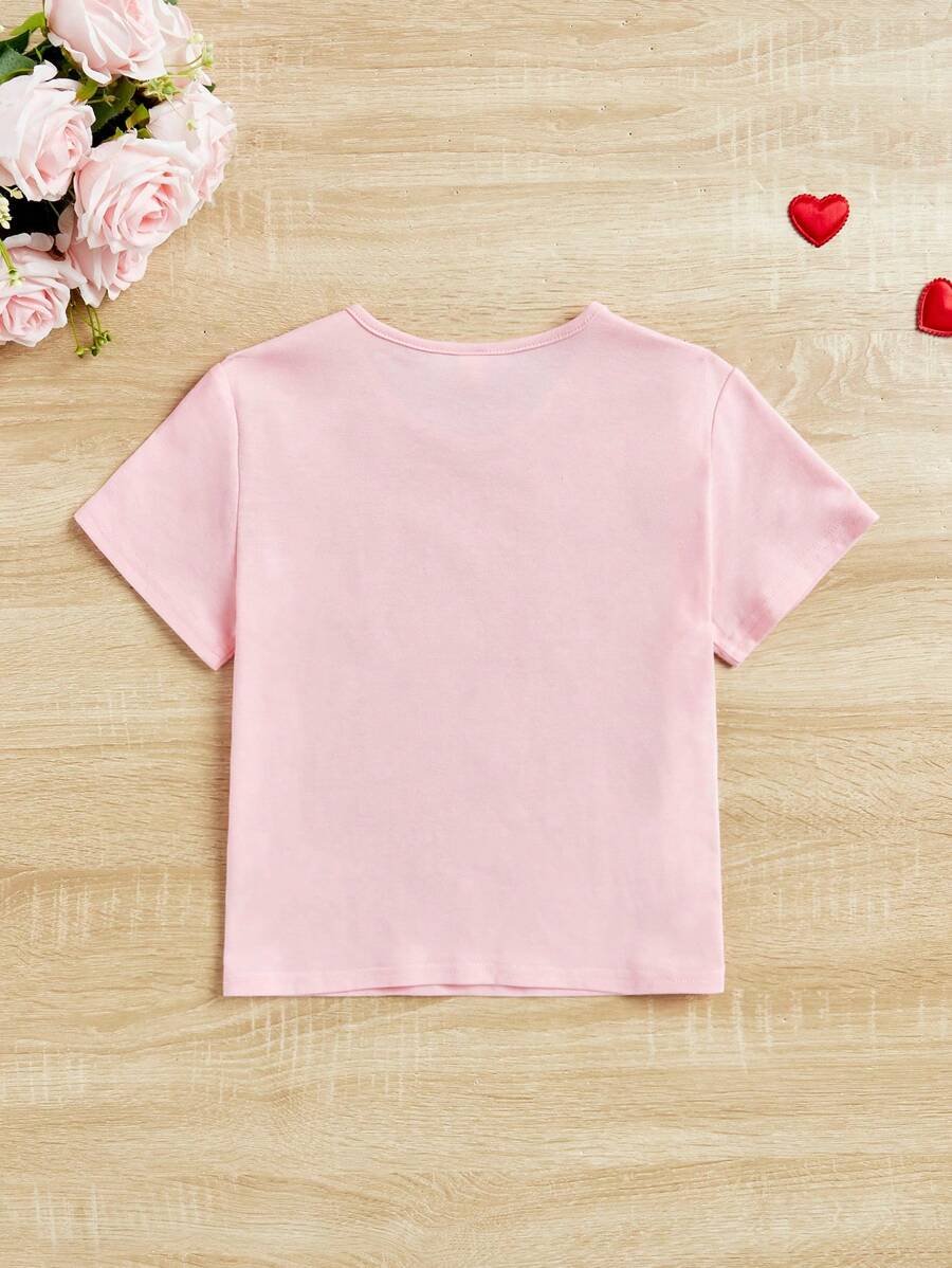 Camiseta Casual De Manga Corta Con Detalle De Corazón Con Lentejuelas