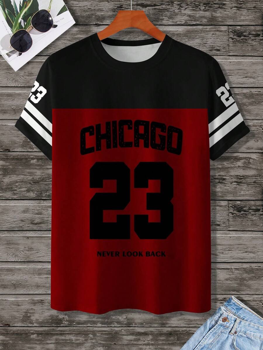 Camiseta casual de manga corta de cuello redondo con estampado numérico