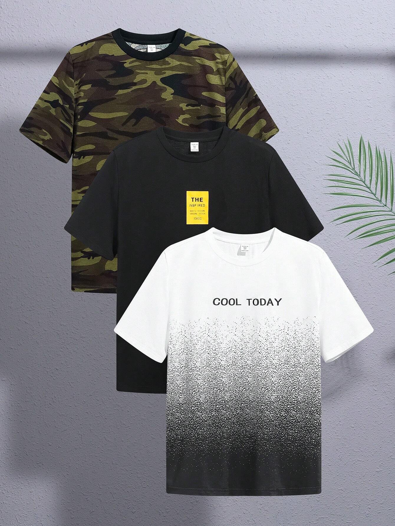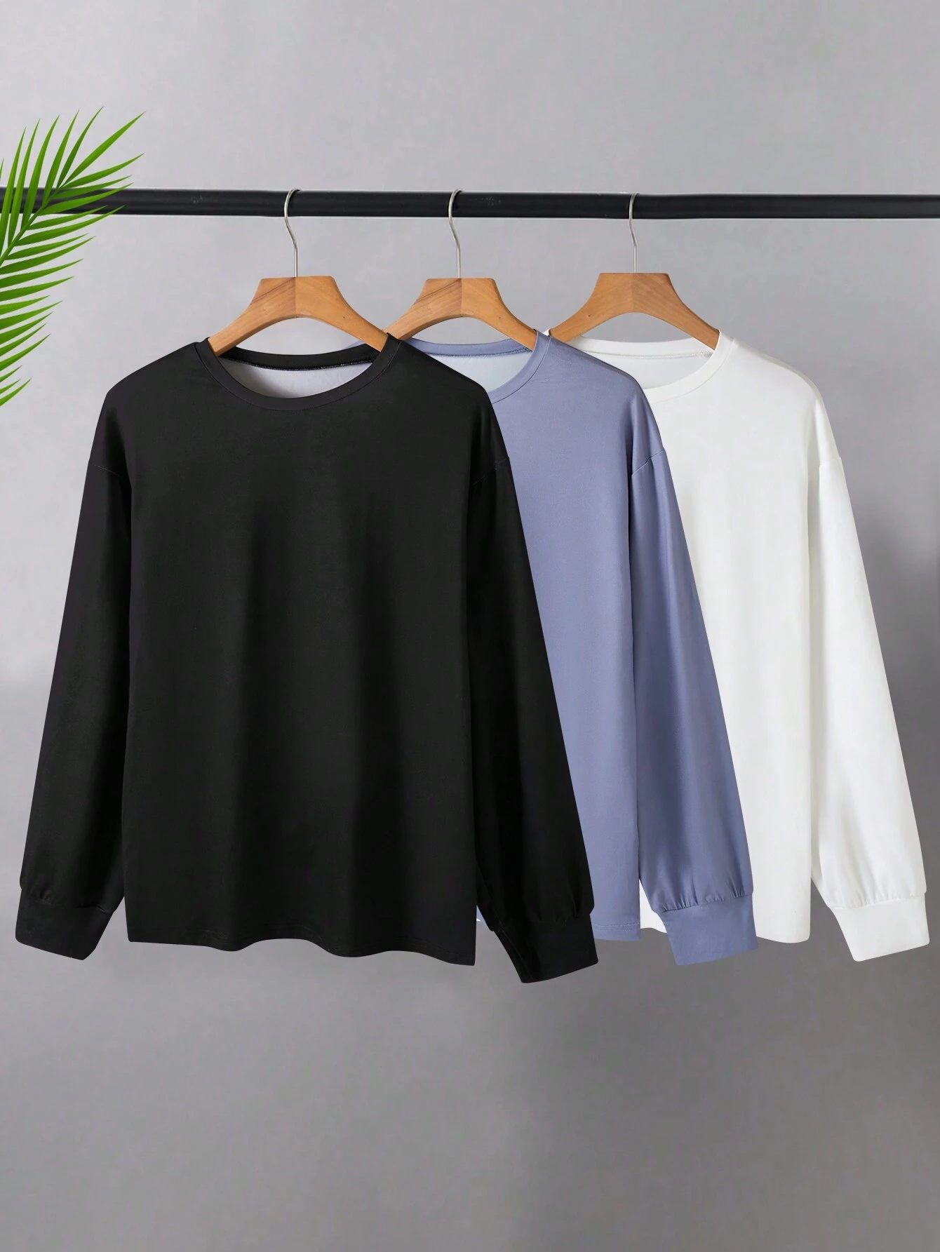 Camiseta casual de manga larga con cuello redondo y diseño de letras