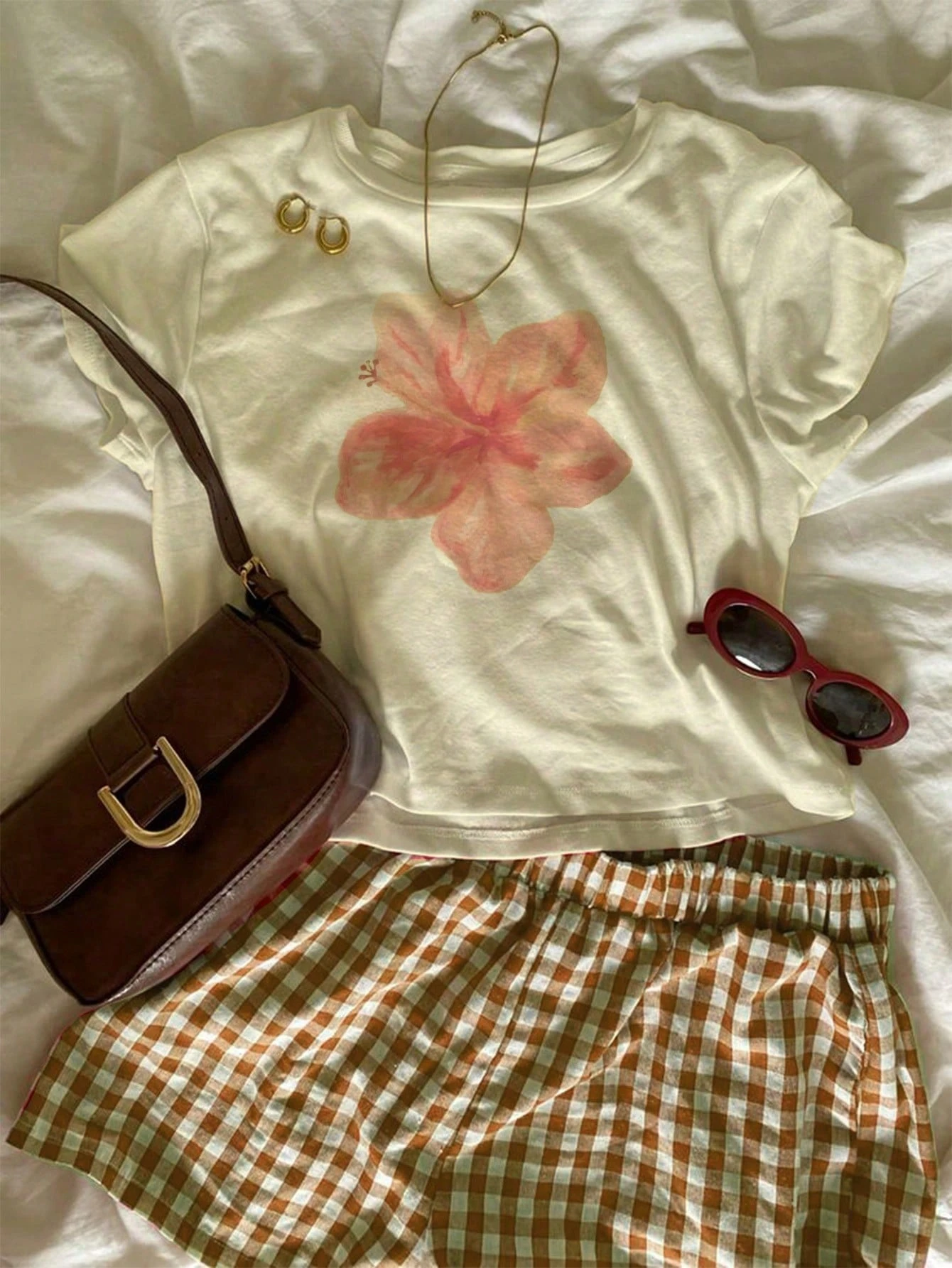 Camiseta casual de verano, camiseta gráfica con bordado de sol