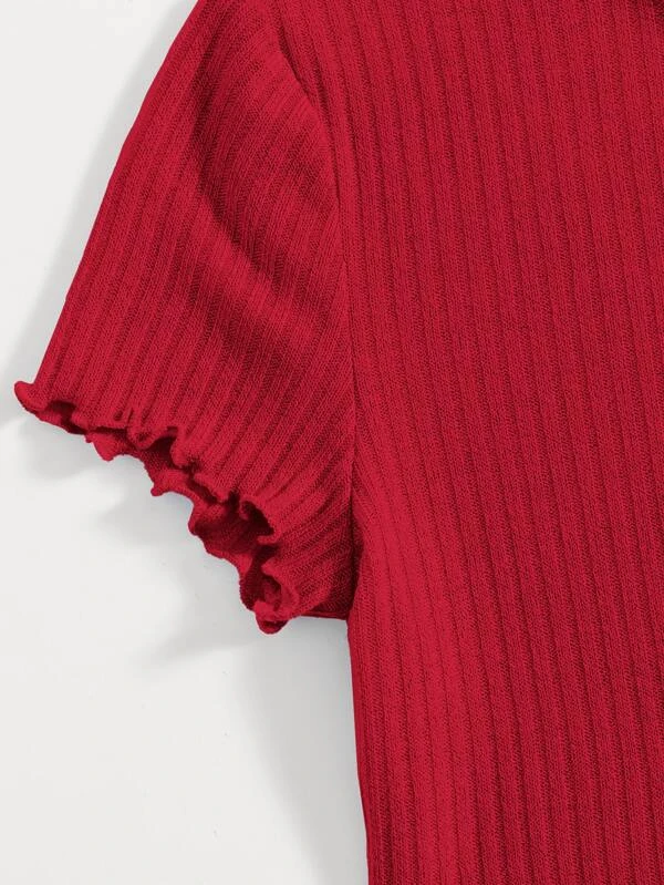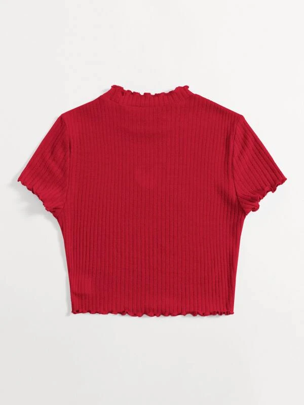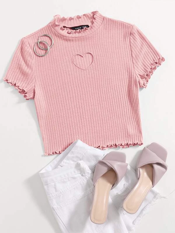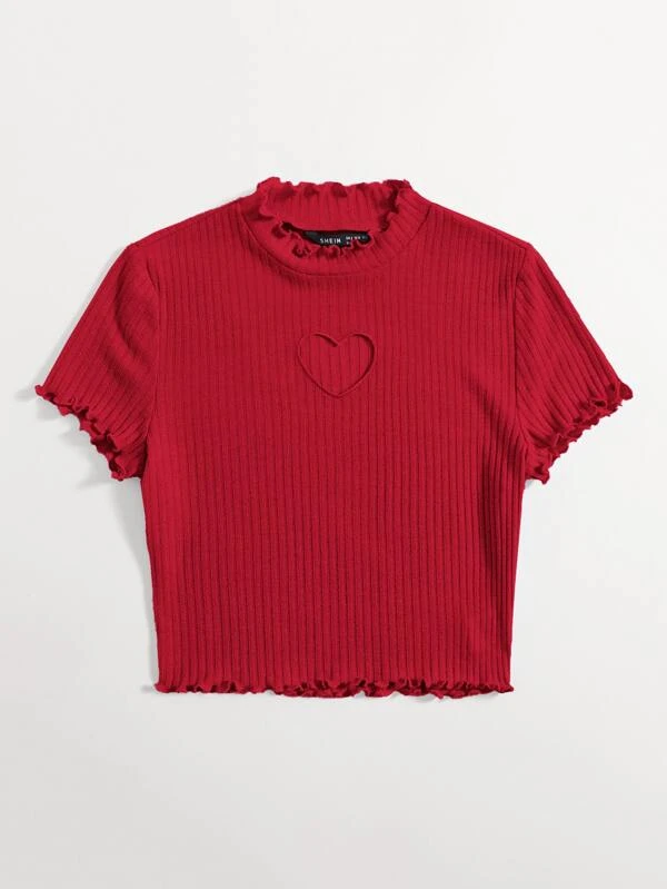 Camiseta con coraz?n con dise?o de abertura ribete en forma de lechuga
