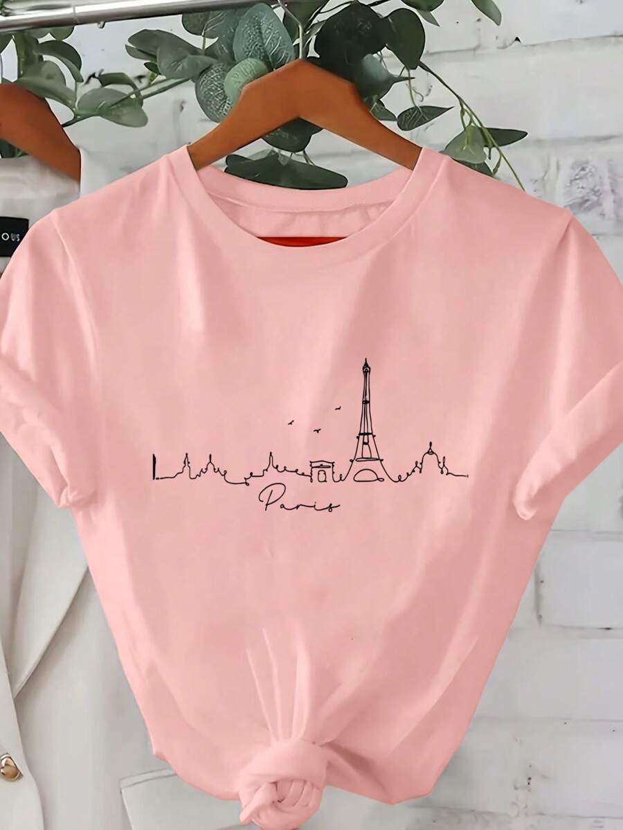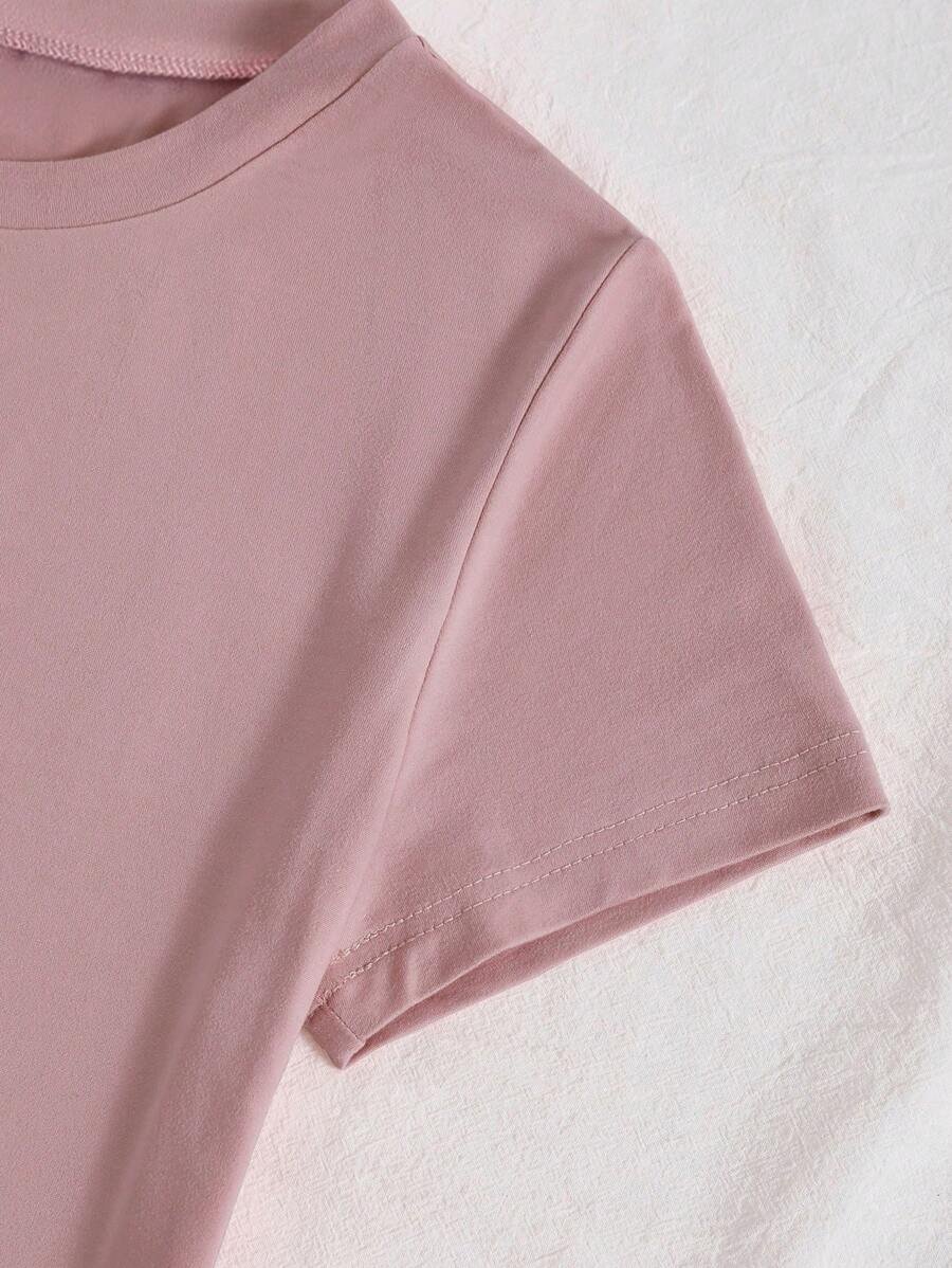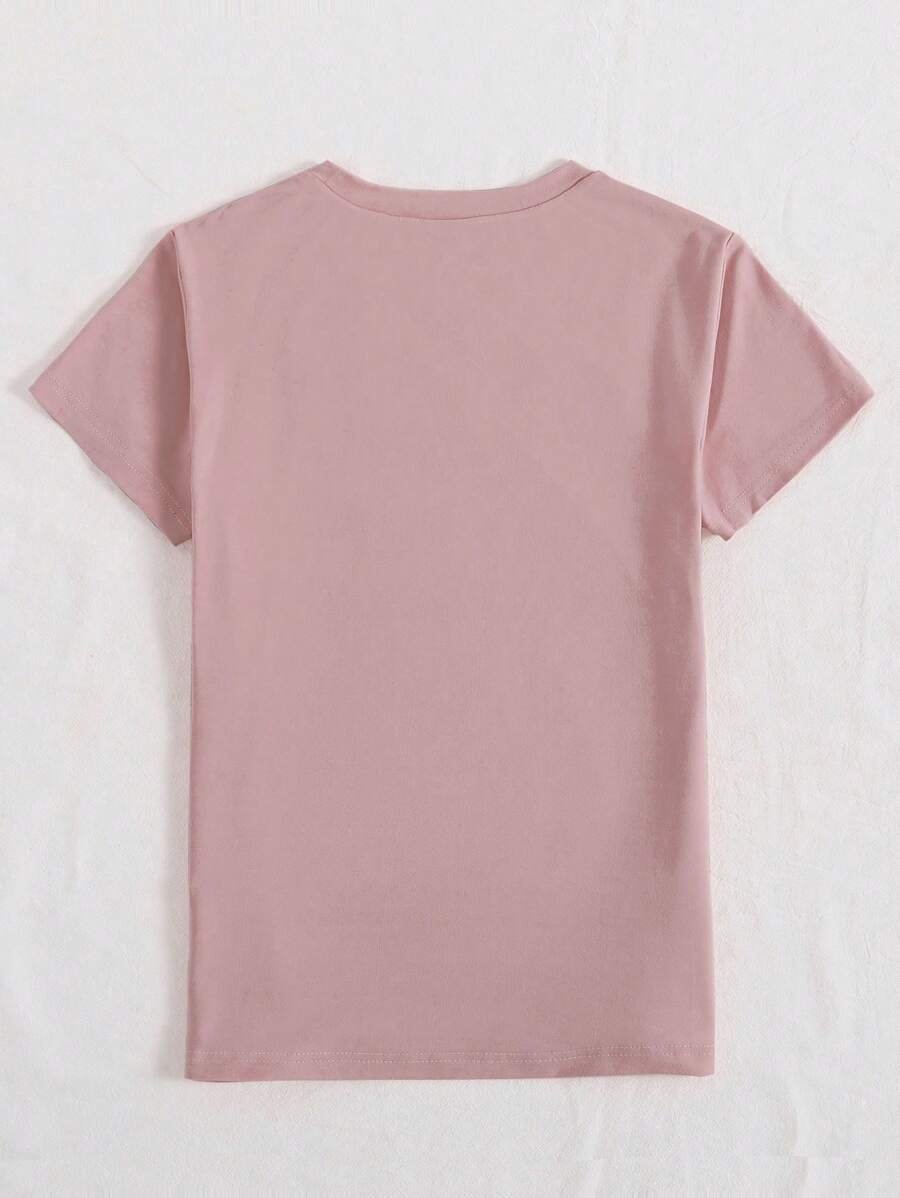 Camiseta Con Cuello Redondo Y Mangas Cortas Con Estampado De Corazón Y Flores
