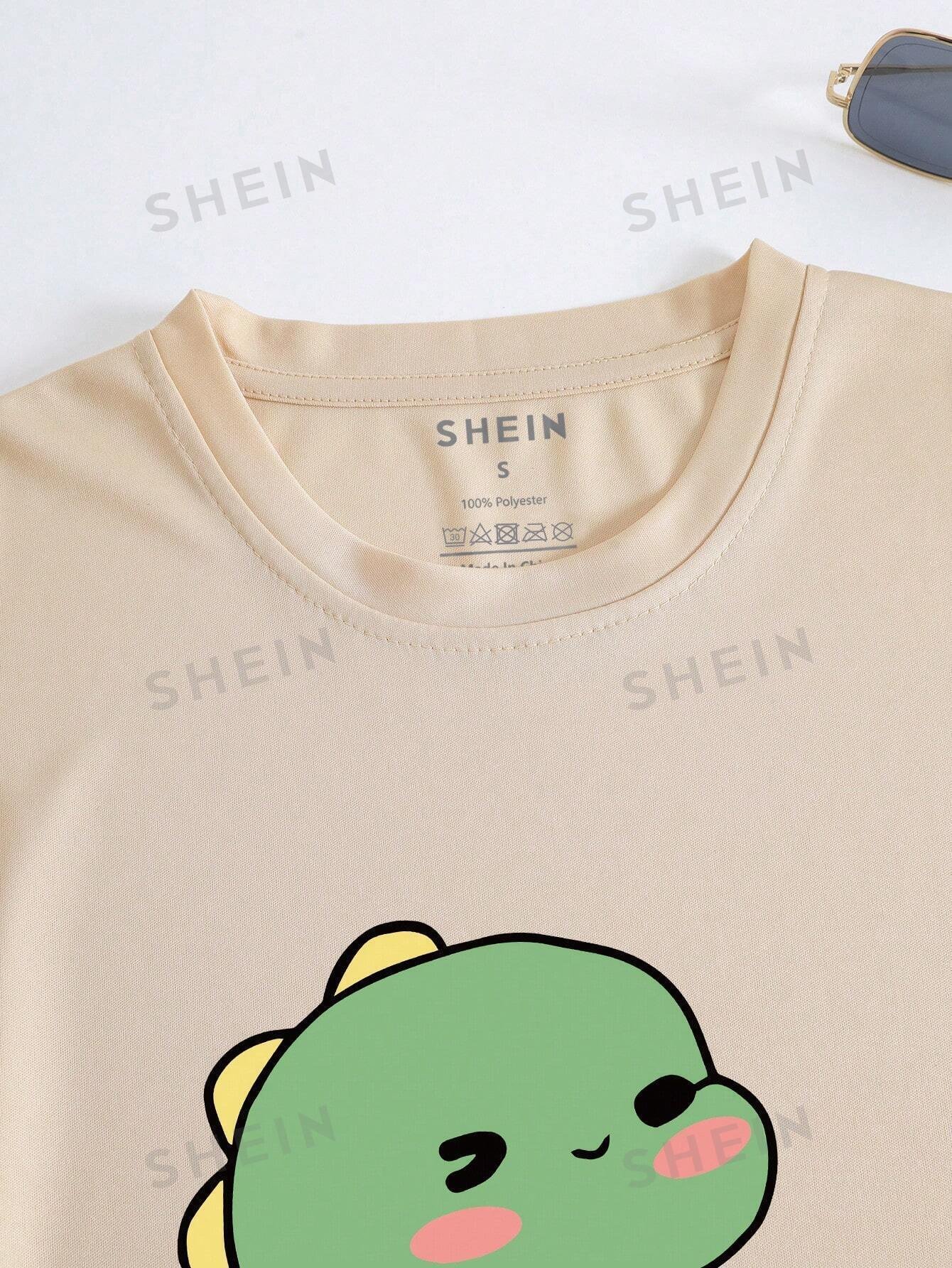 Camiseta con estampado de dinosaurio de dibujos animados