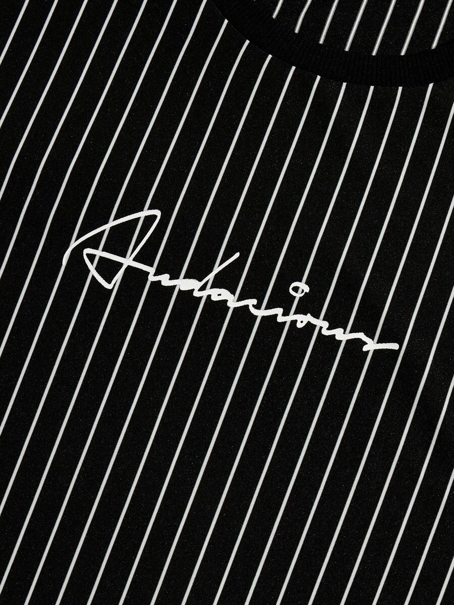 Camiseta con estampado de letra con diseño de parche de rayas