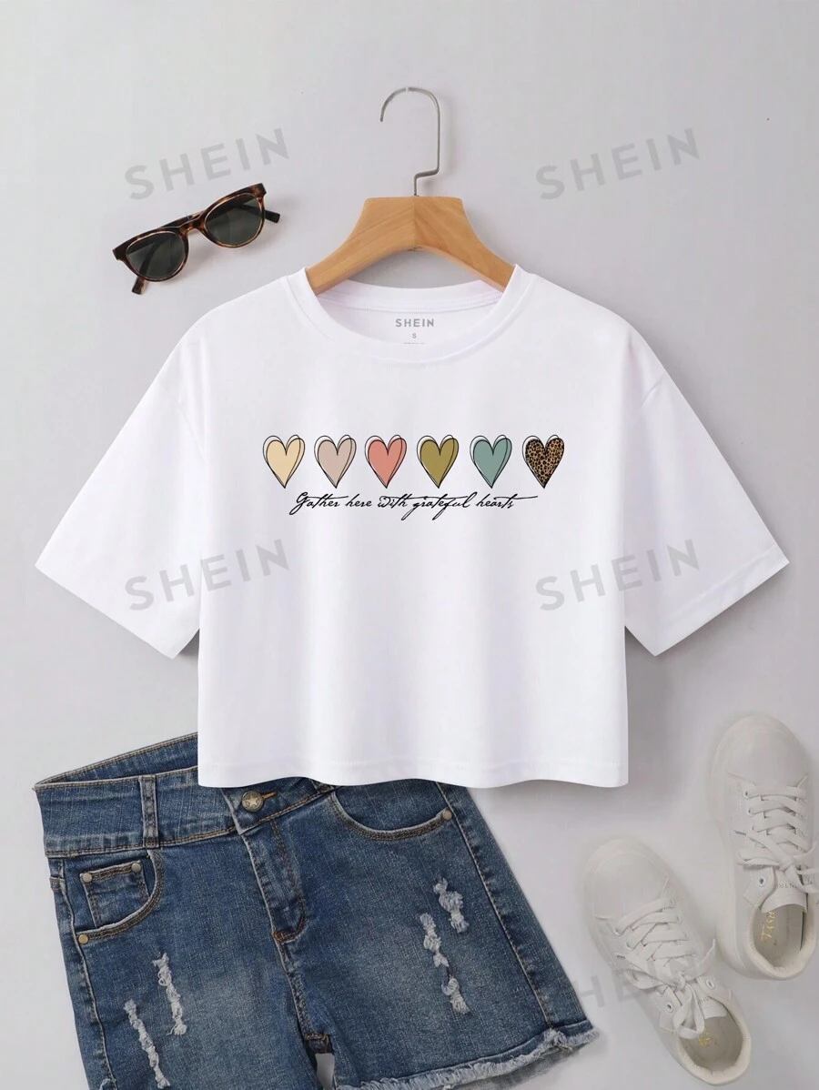 Camiseta con estampado de letra de cuello redondo