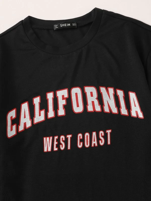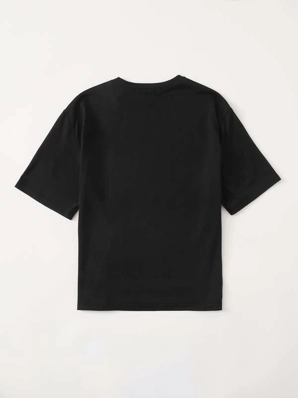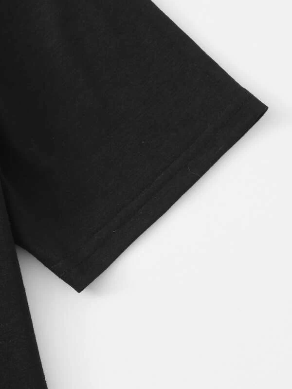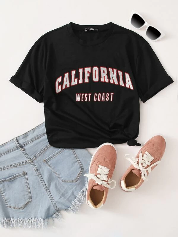 Camiseta con estampado de letra de manga doblada