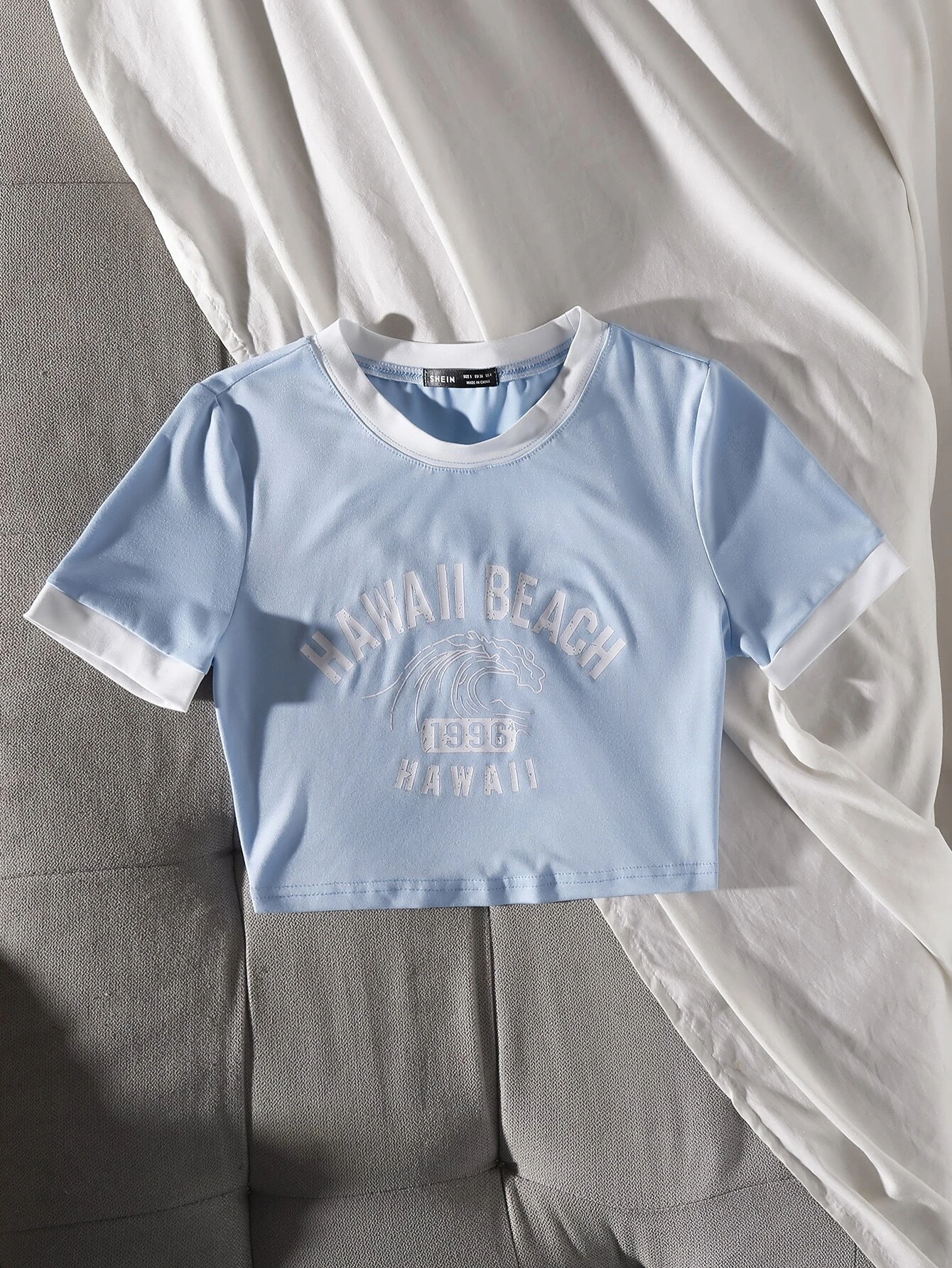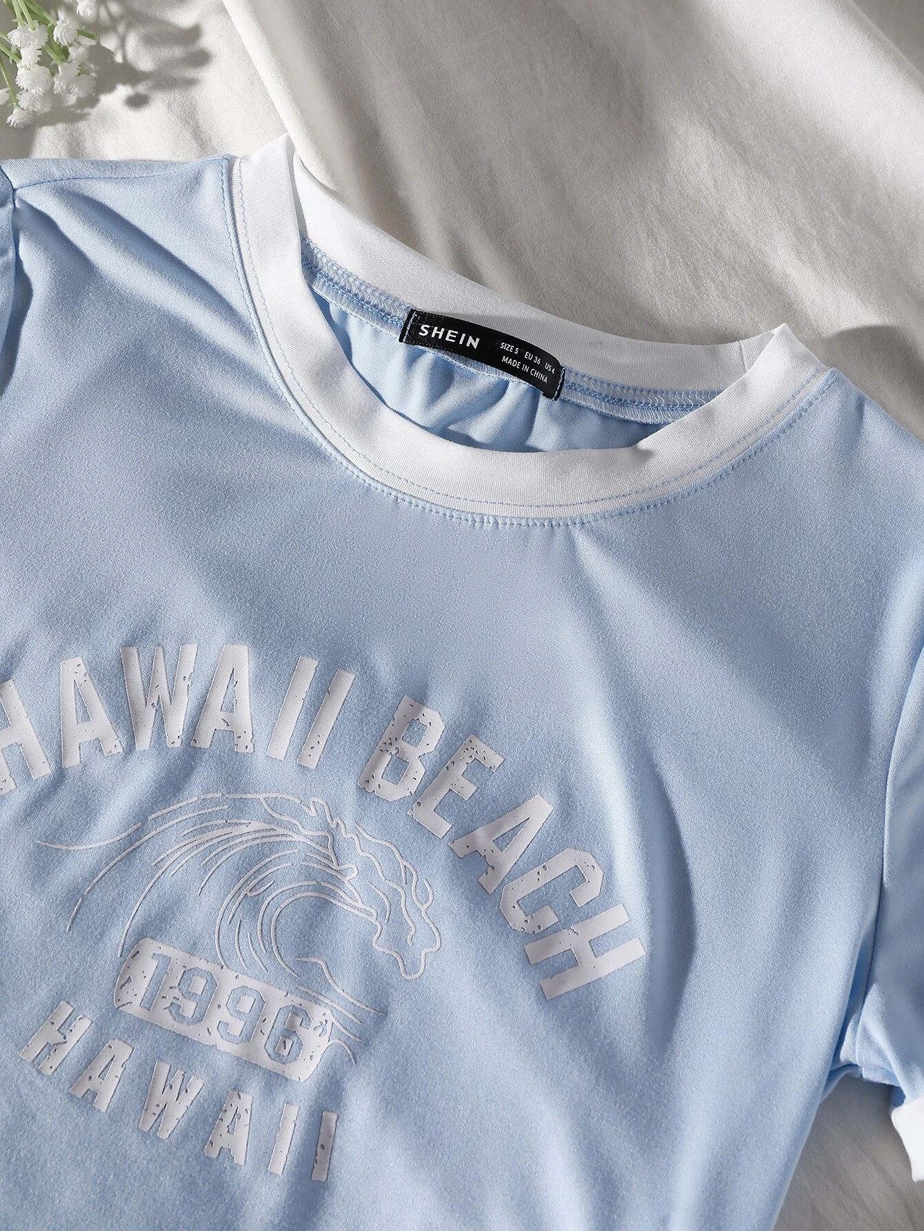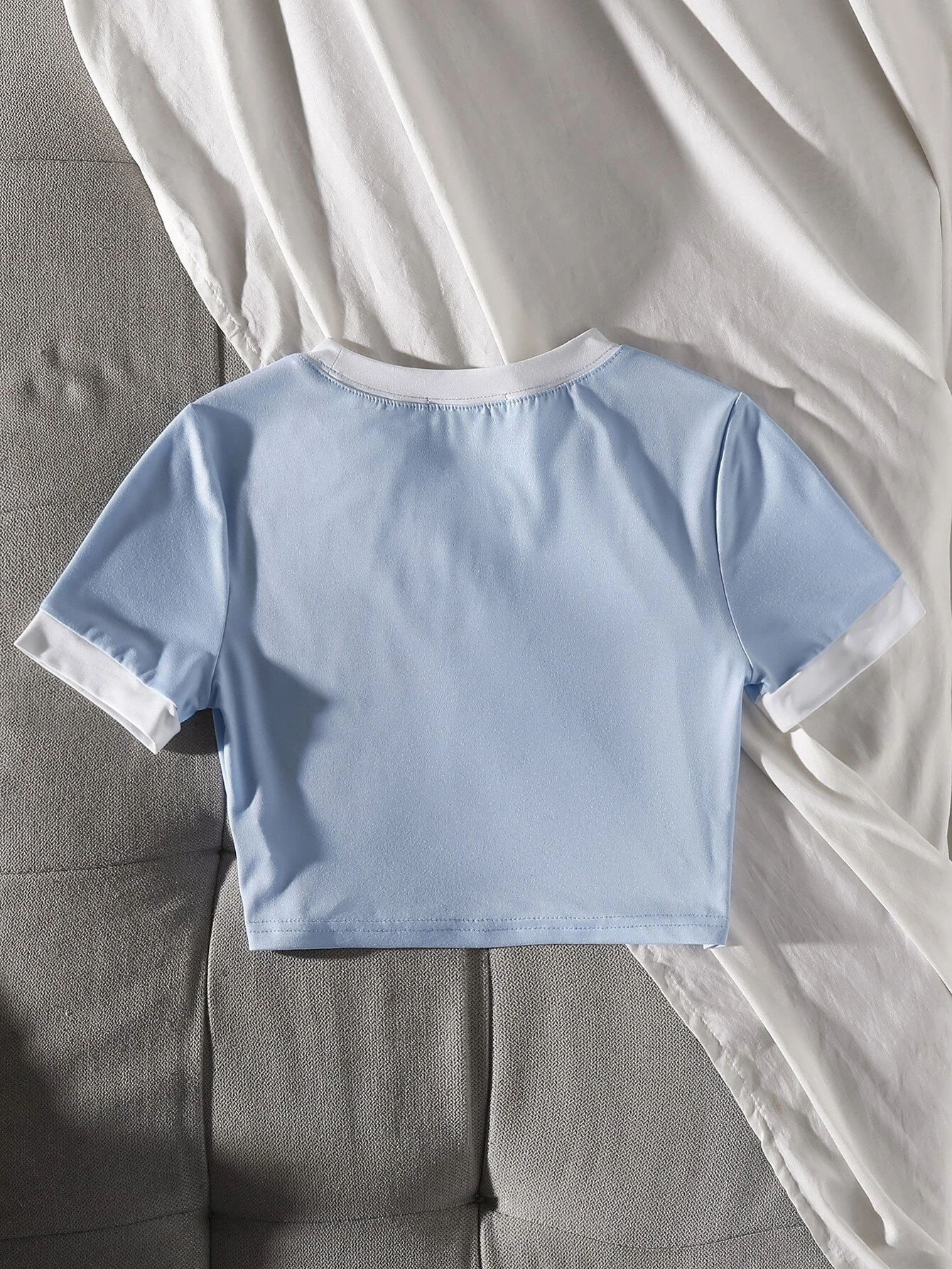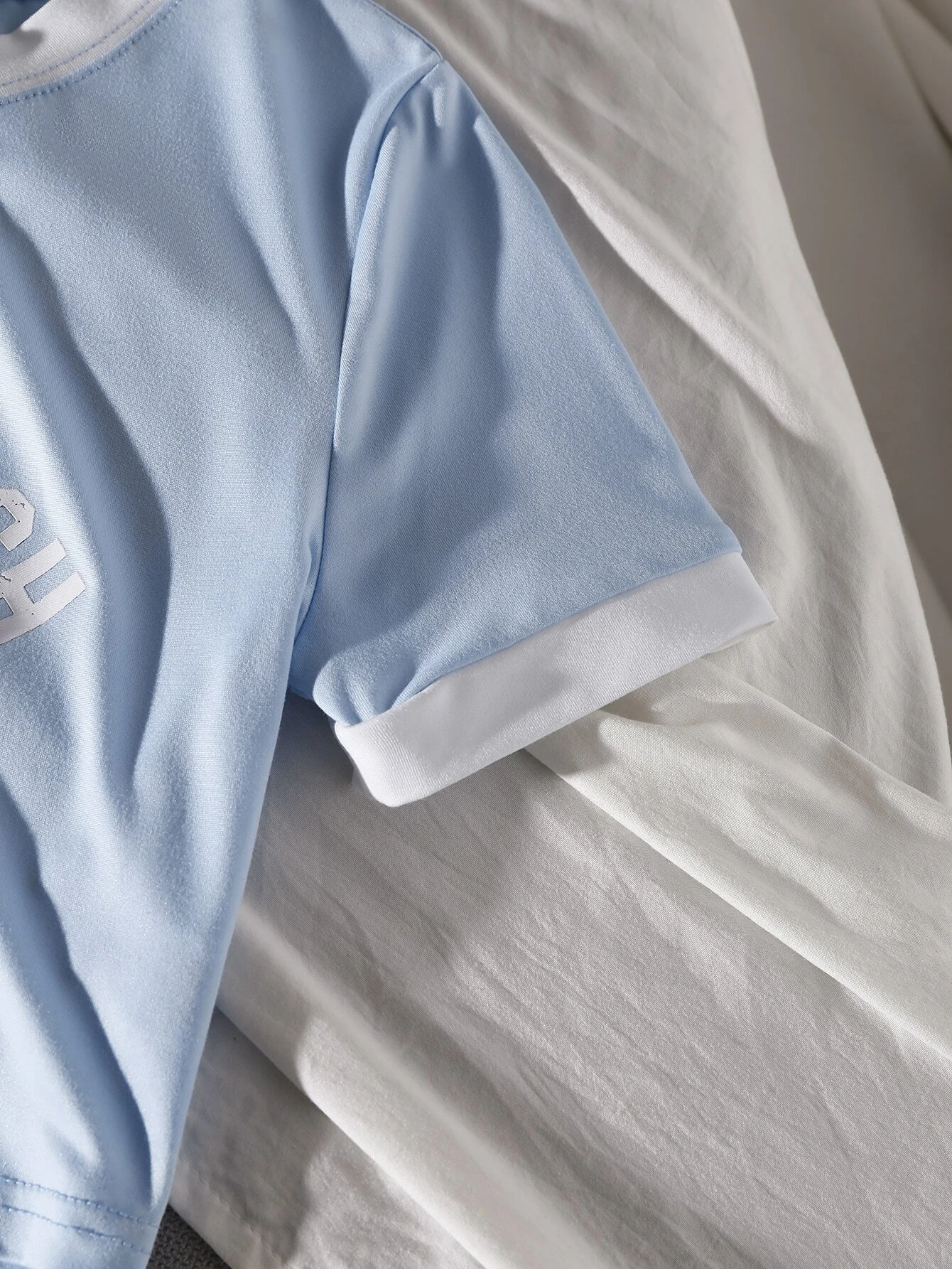 Camiseta con estampado de letra ribete en contraste