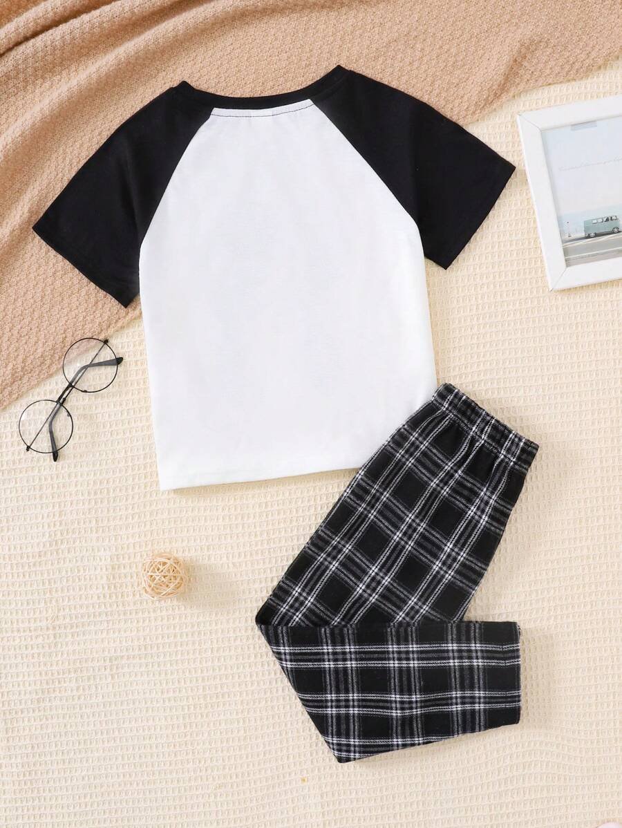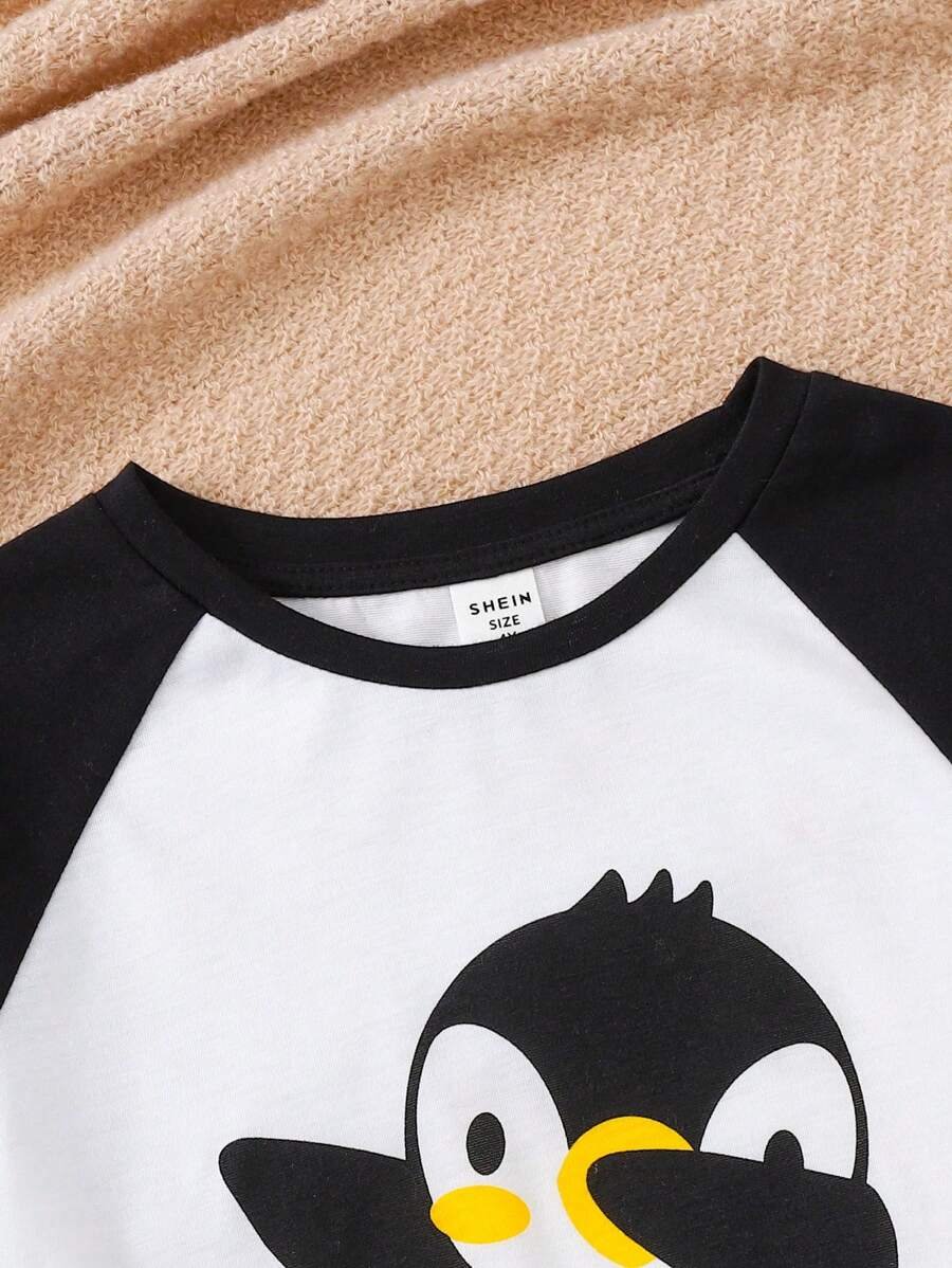 camiseta con estampado de pingüino y pantalones con estampado a cuadros
