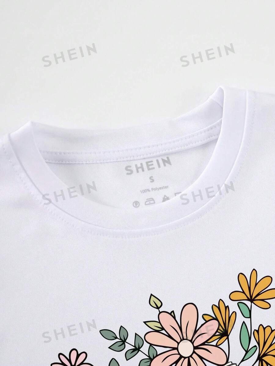 Camiseta con estampado floral con slogan