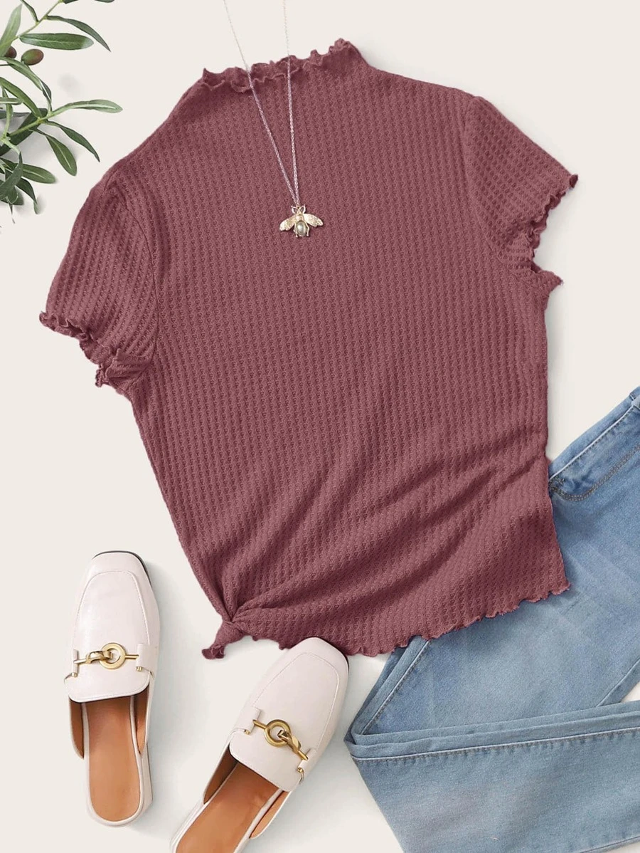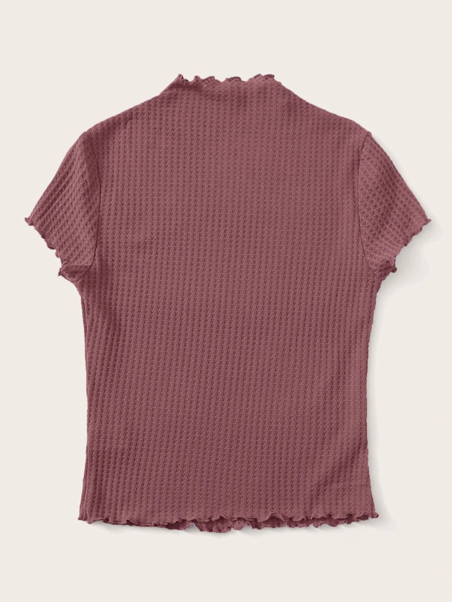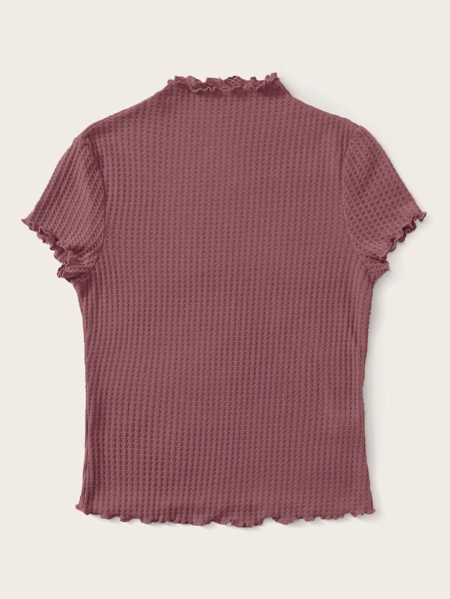 Camiseta con textura ribete en forma de lechuga de cuello alto