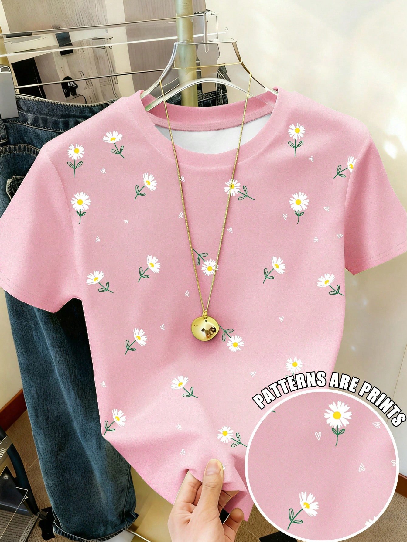 Camiseta corta de manga corta con cuello redondo y lazo lindo