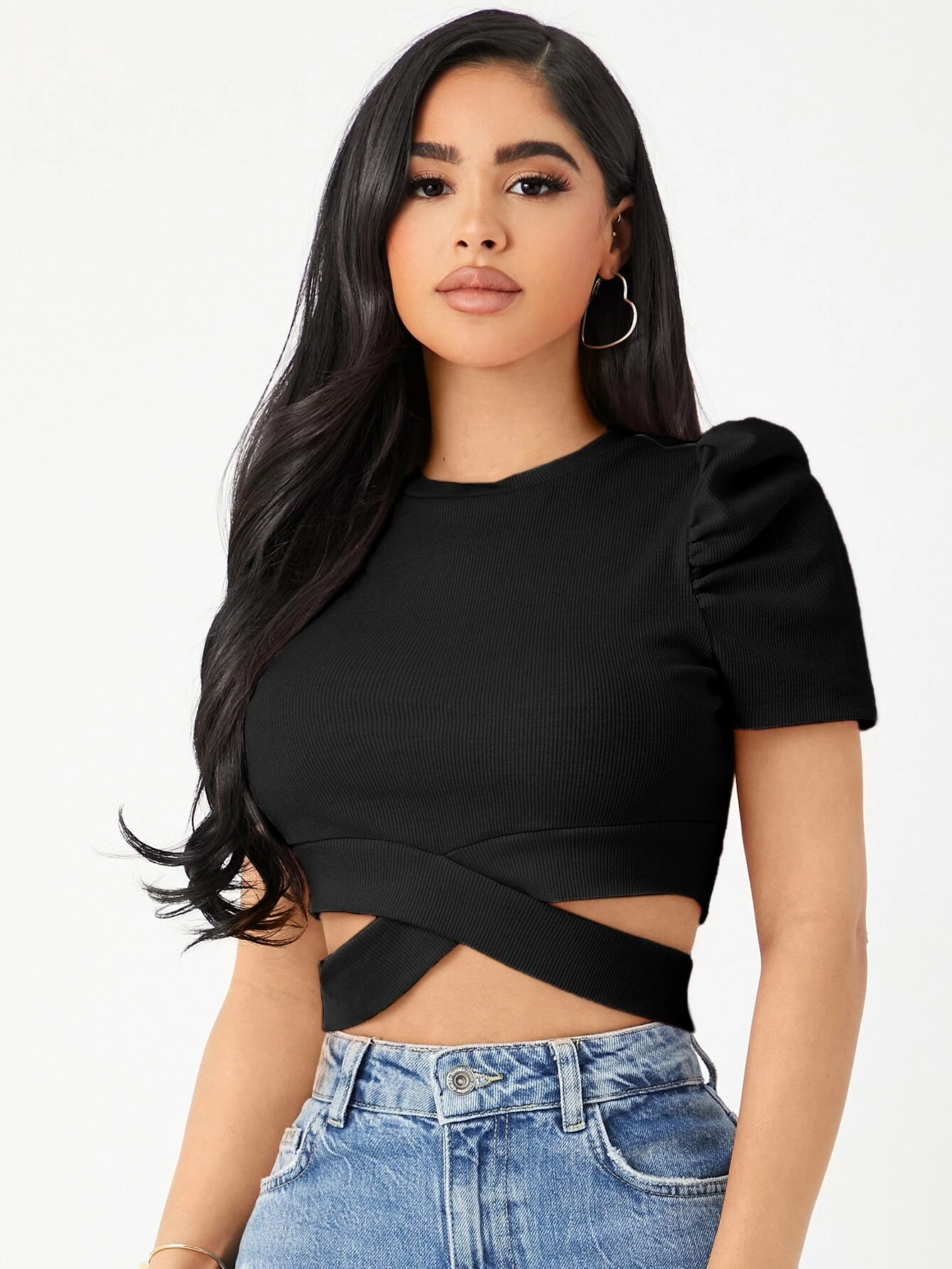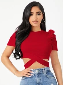 Camiseta corta de manga farol bajo con tira cruzada