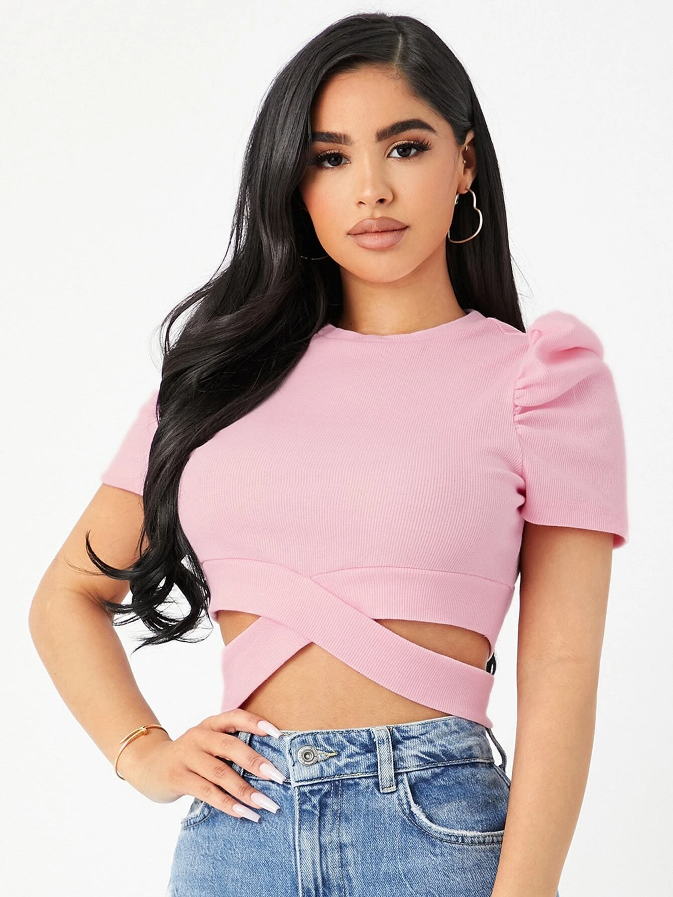 Camiseta corta de manga farol bajo con tira cruzada