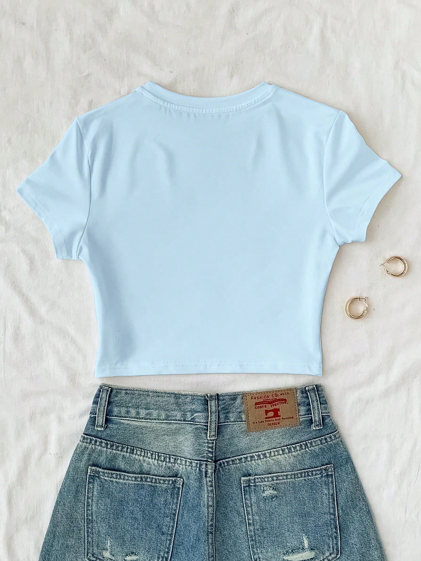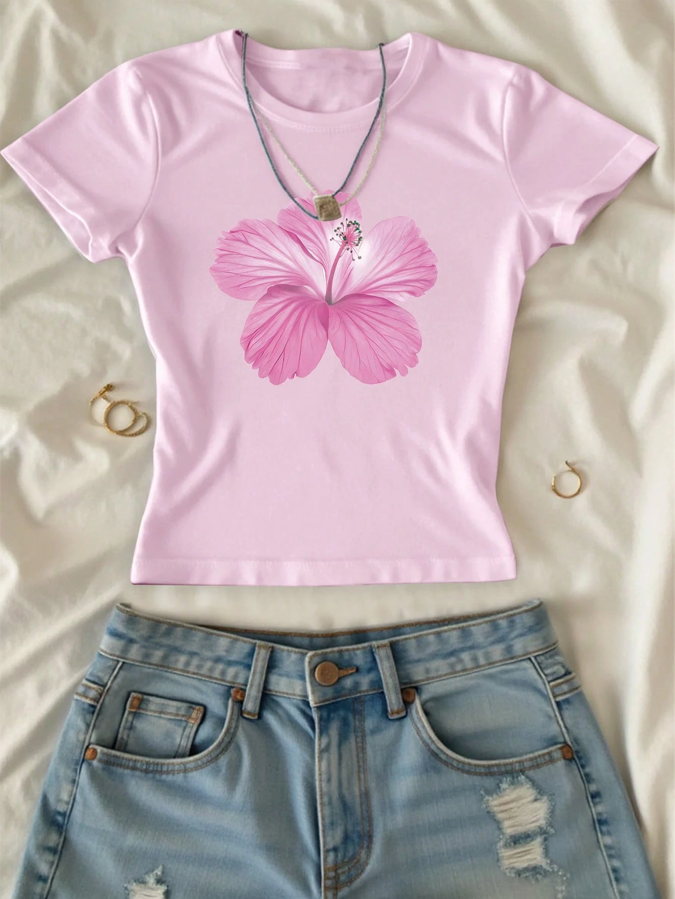 Camiseta corta de mujer con ajuste slim, estampado floral