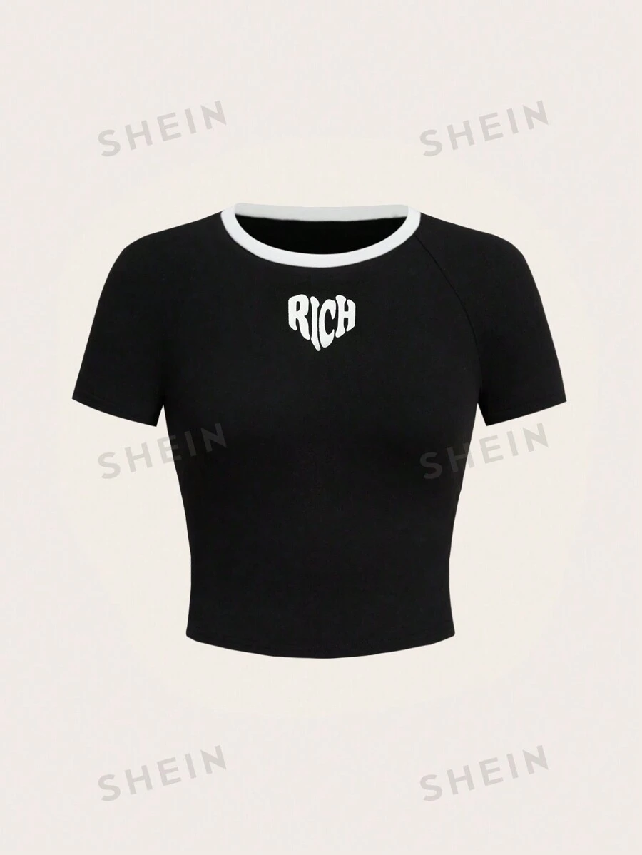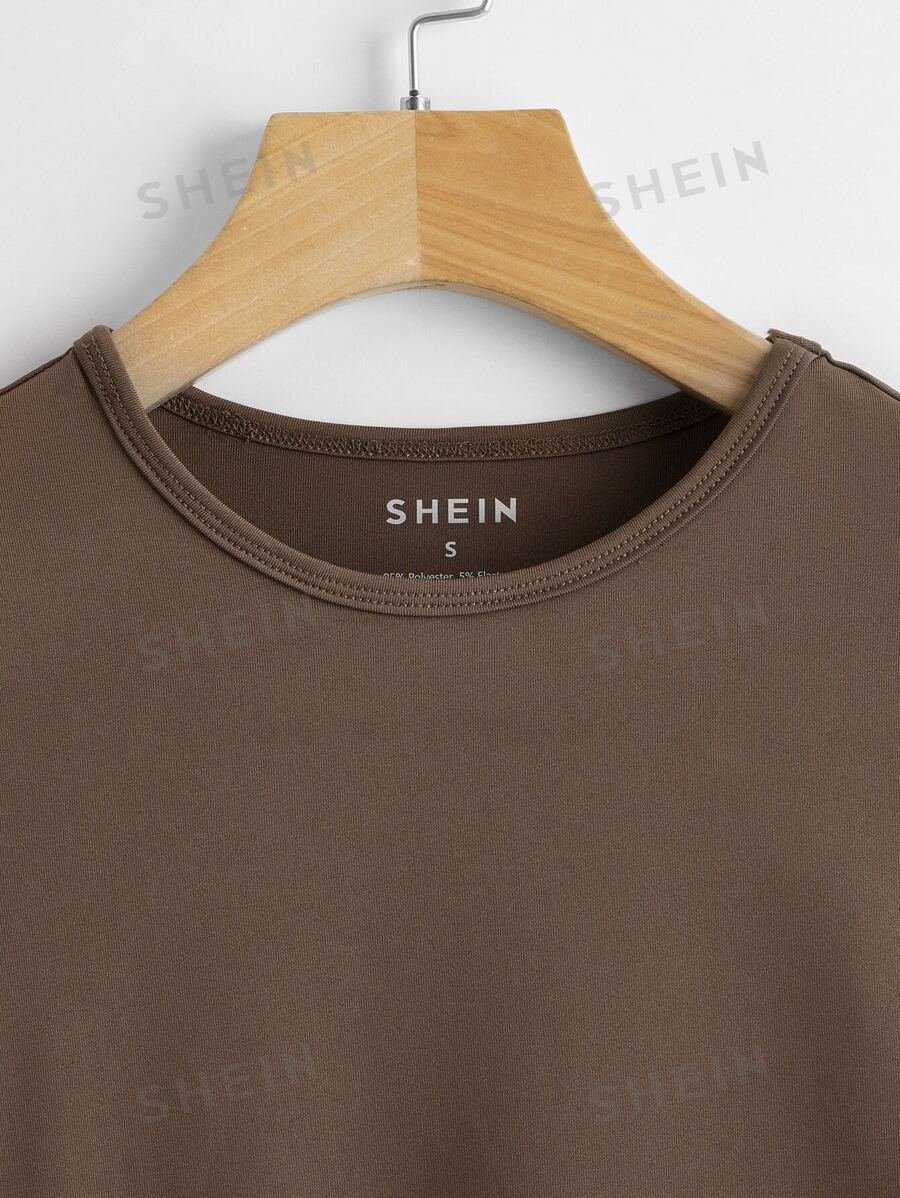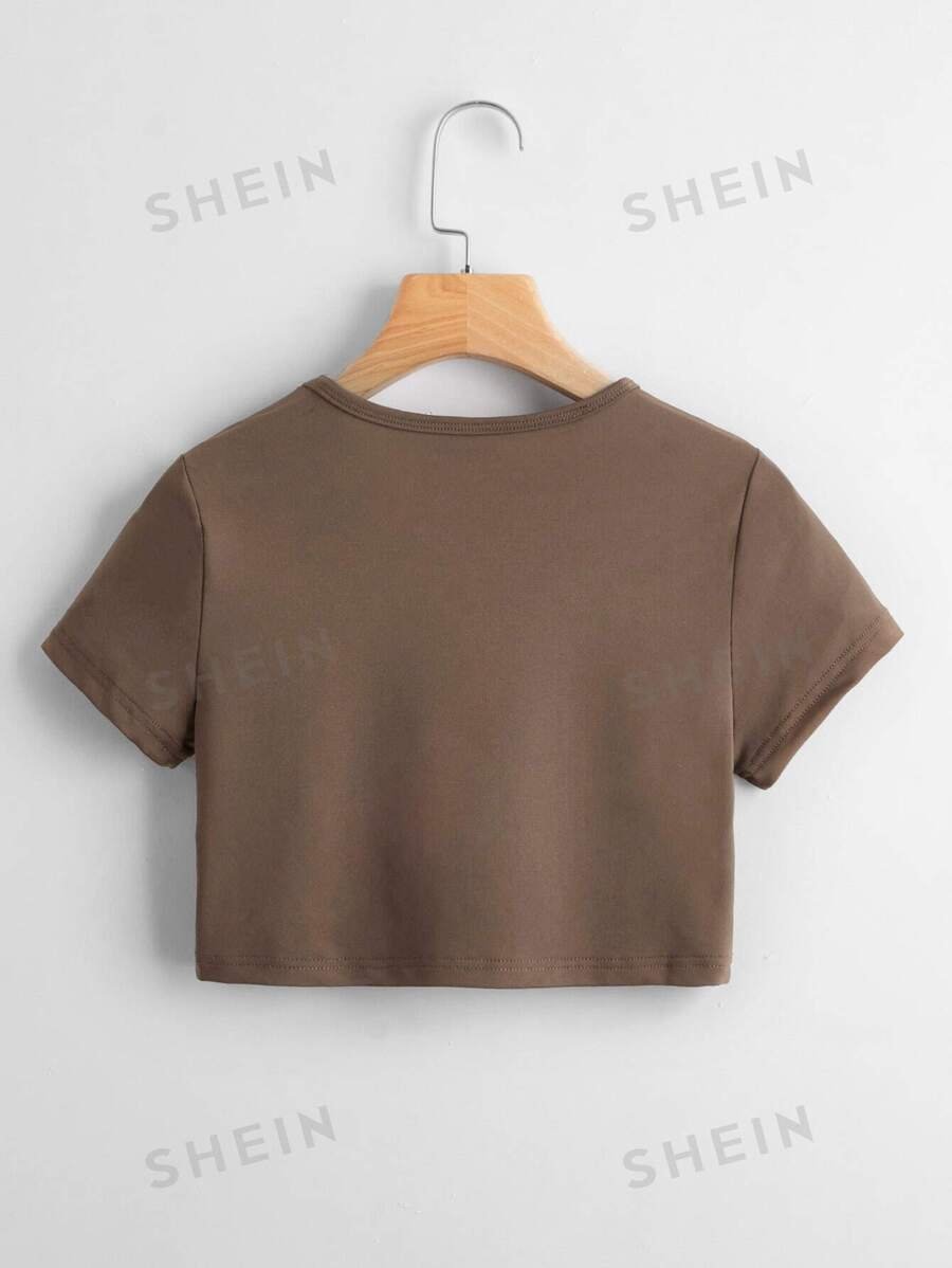 Camiseta corta unicolor de cuello redondo